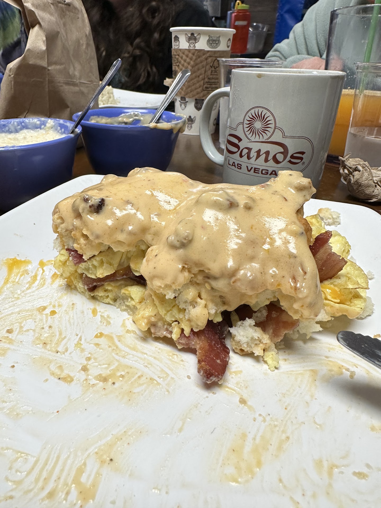 The biscuits are A 10/10. Perfectly flaky and a great flavor. The biscuits are also large, one breakfast sandwich is filling, no need to worry about leaving hungry. This time I had the chicken biscuit. The chicken is so flavorful and was cooked just right, but I also recommend getting the chicken gravy to take it to the next level of flavor. I also tried the shiitake mushroom gravy this time. The gravy is very earthy and robust; if you like a more umami flavor, then you should definitely try it out.