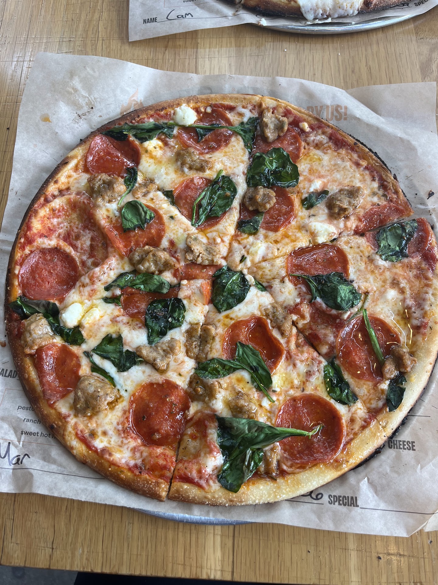 My son & I were almost finished with our pizzas before my daughter received hers, thankfully we had ordered other items for her to eat while we ate our pizzas.