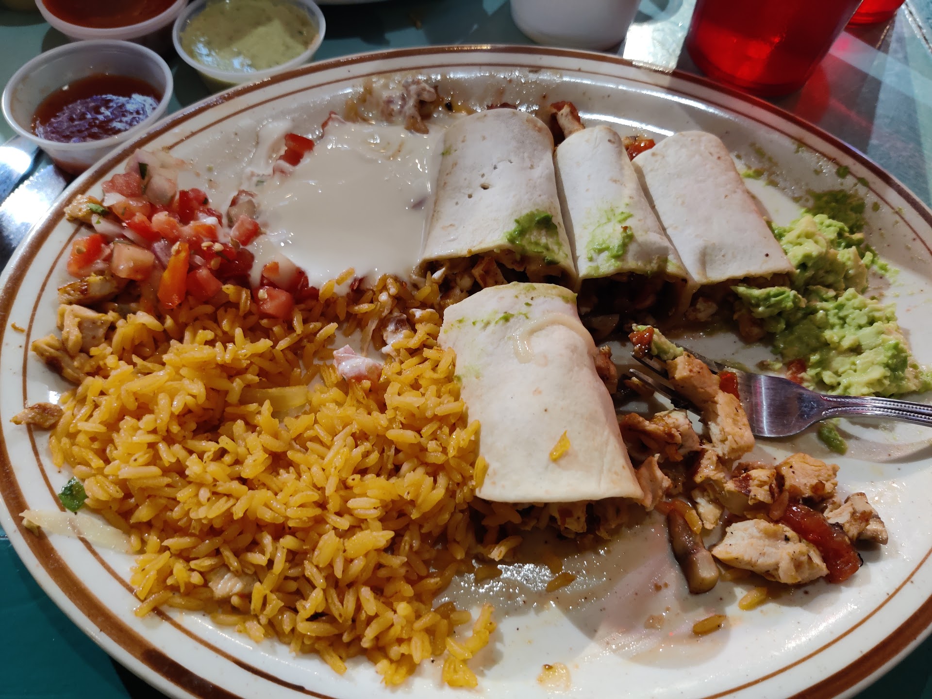 I wasn't the only one disappointed by their meal. My aunt ordered the taquitos and while normally taquitos in a restaurant are hand rolled but these looked IDENTICAL to the ones I get in a box of 100 for $9.99 at go grocery. She got four along with her also pitiful portion or rice and beans. She seemed satisfied, but I would have been pissed if that's what I got.