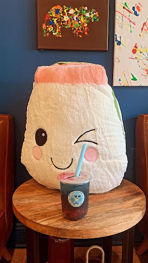 From the moment I stepped into Bluebird Bubble Tea, I knew I was in for a treat. The ambiance is simply adorable, adorned with tastefully chosen decorations that exude a calming and inviting vibe. The cozy seating areas and aesthetically pleasing purchasable art creates an oasis of tranquility where you can unwind with your tea.