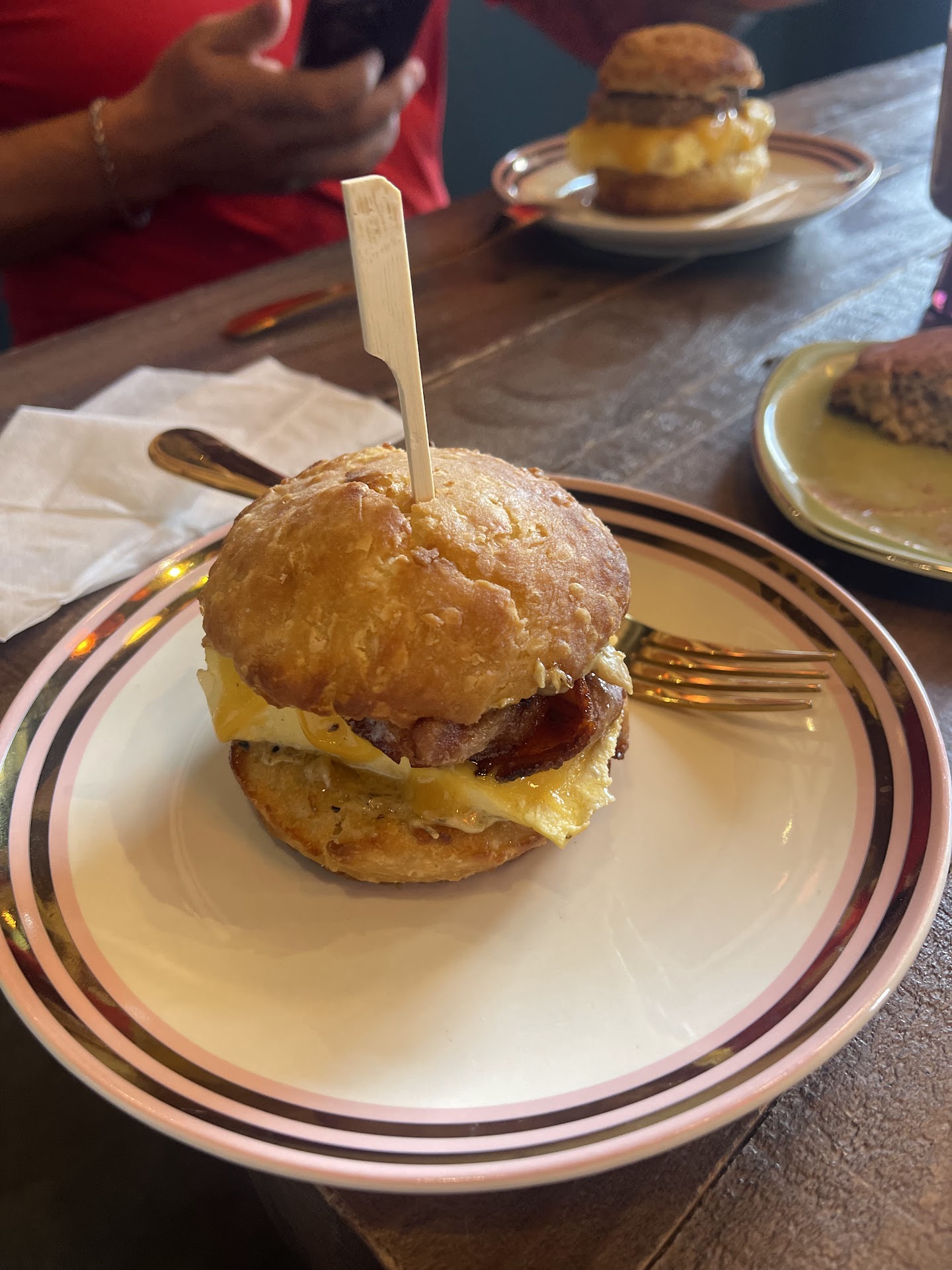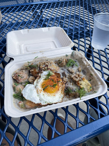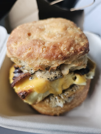 Read moreI’m a chef and have suggestions. The herb aioli was too herby and I tasted of fennel and sage for 20 minutes because it was in my teeth and the mushroom sausage gravy was mushroom soup. Dried herbs and less would be better and add a dash of whole grain mustard and course pepper for texture and vinegar to knock the creamy mayo down. Cream and cut mushrooms over torn biscuits. My take would be cream white breakfast style gravy with mushrooms cut up in it. The sausage patty available À la cart for two dollars was obviously an after thought same with the bacon. The egg soufflé was slightly soft from my point of view and the biscuit wasn’t quite large or robust enough to handle the job with all the wet egg and that herb drenched mayonnaise in it. The vanilla latte was absolutely perfect nicely decorated. Everyone there could not have been nicer I just have a different...