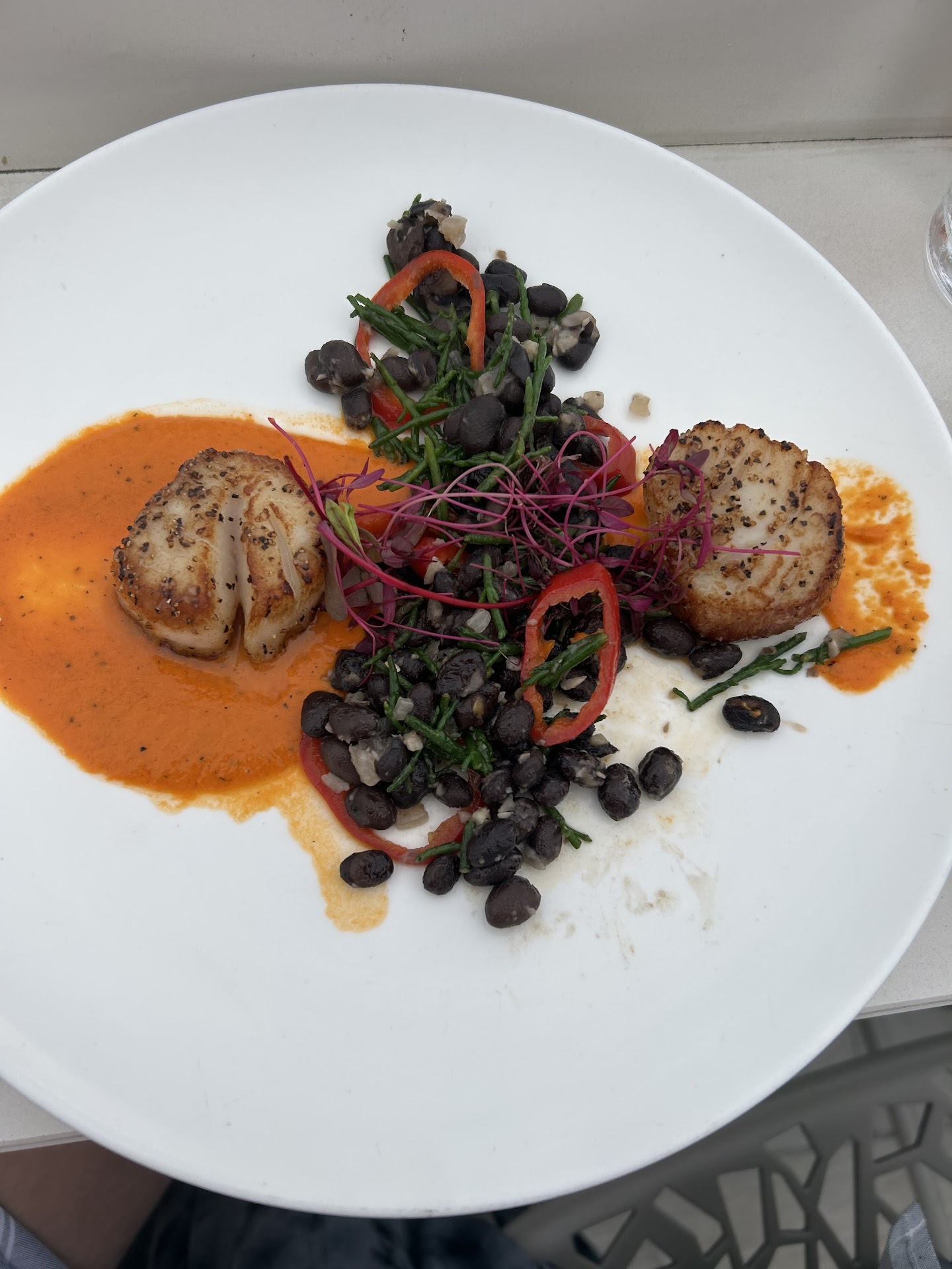 Read moreThis restaurant located on the 9th floor of the AC motel and was gorgeous but very limited in seating space. The layout was odd. It didnât bother us, but we were surprised by the lack of railings around the rooftop seating area. The most important issue regarding the rooftop restaurant is the pricing and/ or portion size and the odd food combinations. Iâm including a picture of the scallops. This tapas style entree is priced at $20 and includes 2 scallops and a small amount of black beans. The salmon entree was a salmon filet atop of a sort of chickpea salad. The beet salad includes a couple beets cut up on a small plate. The kale salad which is advertised to come with artichoke hearts, only had a few artichoke leaves. (The next night we ate there earlier and it had artichoke hearts. They may have ran out of the hearts the first night?). The mixed drinks are very expensive here. Their version of an old fashioned is $28 for example. There are MANY great places to eat in and around town. This is not one of those great places to eat.