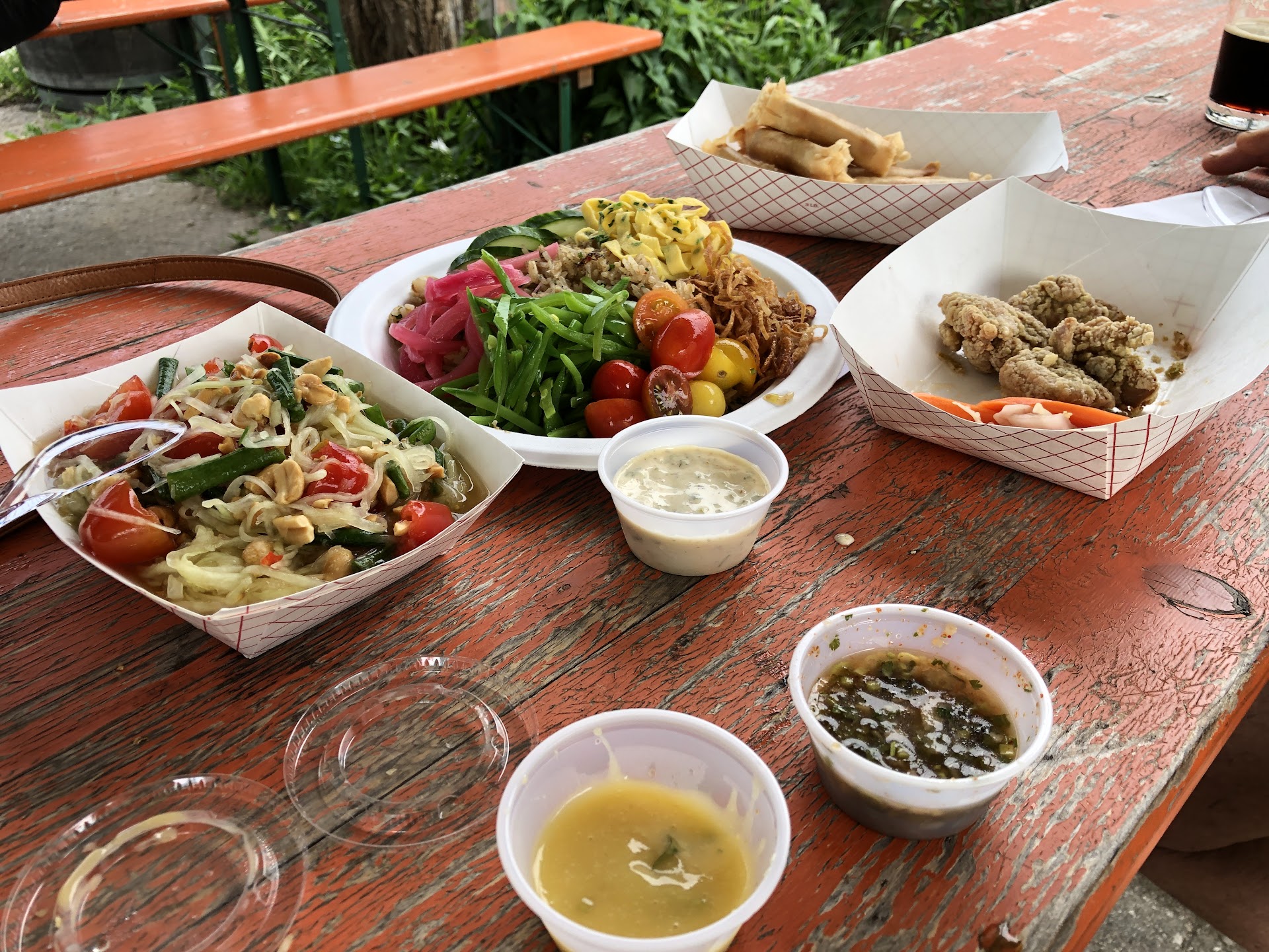 Some of the most high quality, authentic and creative Thai food I have had in the states. The menu changes every two weeks and the number of different dishes I have been able to have in the last year (most that I rarely find at other Thai restaurants) is incredible. They serve a wide variety of types of meat and veggies for keeping a small rotating menu. And I'm serious about the veggies. Locally grown stir fried bamboo! The freshest papaya and pomelo salads! Nam prik egglant dip!! Kabocha squash! They make their own curry paste and the quality of their curries is really impressive. They always have plant based and gluten free options on each menu, and even make their own vegan version of pork belly that is crazy close to the real thing.