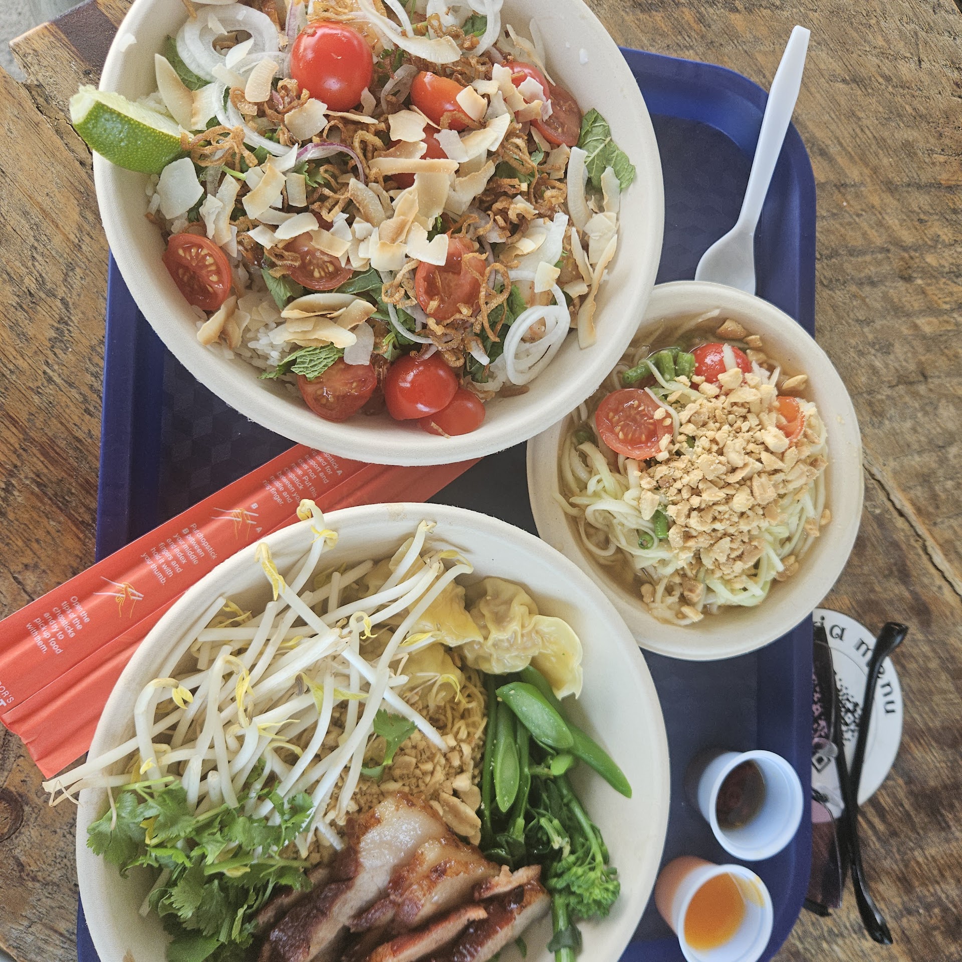 Read moreThe first time we ate here was a month ago, we thought it would be autentic since they are in a food truck, they gave us a can of Thai tea instead of Authentic Tea LOLS. We decided to give it another try and eat some meat since someone told us the food is okay, the second time was yesterday, tried their Coconut noodles, It was a cold Noodles they should've labeled it as a cold noodles. It was really not palatable and just one bite we had to throw it away it was bad sorry. The staff are also not Thai people that's maybe why the food lacks of flavor. Oh also we tried the Kawon Pork, pork was tiny serving, rice is okay. The fried onion was the best part. Sauce is okay too. But the pickled Papaya oh Boy, they need to learn how to chopped and do it correctlyđ overall I wouldn't recommend it for someone who is looking for Asian/Thai Fusion. It's a...