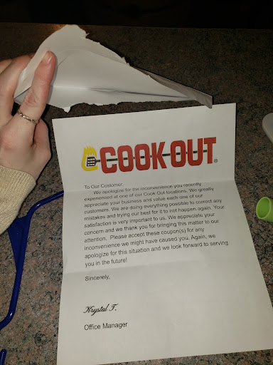 Read moreDue to COVID-19 complications this particular Cookout has become drive-thru only, which isn't a big deal. The problem is, is that the drive-thru setup ALONE makes me want to give this place 1-2 stars. A few staff members have been somewhat polite, so I'm giving them 2 stars, HOWEVER, I would recommend going to a different location for a couple of reasons. As previously mentioned, the drive-thru setup is confusing and irritating. There are two lanes, which is typical for cookout, except they're on the same side of the building which causes huge hold ups. Additionally, people. . . just get out of their cars and. . .walk around the drive-thru? I shoudl mention there's no outdoor seating at this location so people are just standing around in the drive-thru. Last but not least, staff is serverely overworked, and it's obvious by their interactions with customers. These are difficult times, so I feel bad complaining about lack of quality customer service, but I've been yelled at / to on a handful of occasions. If I were you, give these tired people a break and go to Taco Bell or something else; it's not worth your time to go to...