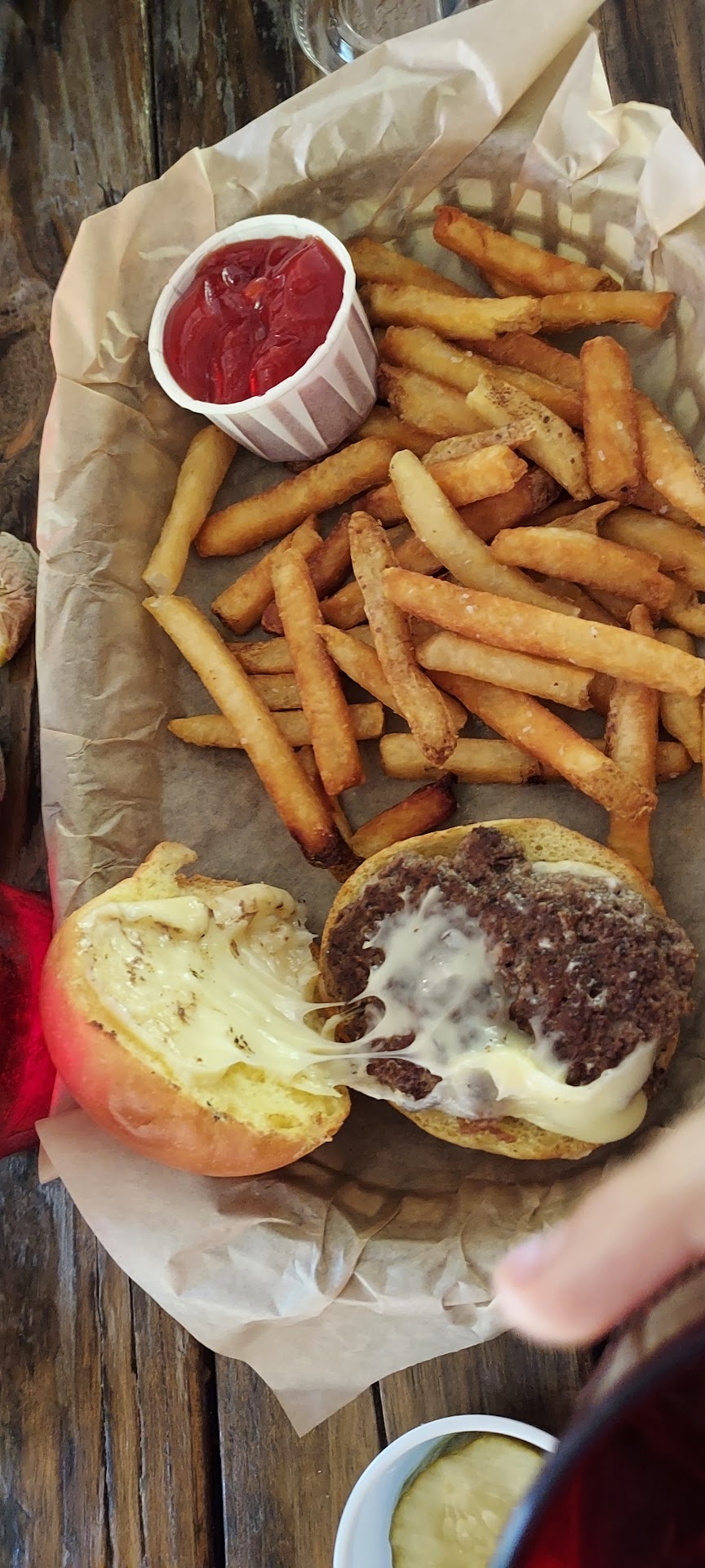 Read moreWe went around 2 on a Sunday afternoon. There was a bit of a wait to be seated, no problem. Our waitress quickly came over to our table and took our order but then informed us they were out of fries. One of the main reasons we had went was bc we were in the mood for fries. She assured us that this never happens, so, lucky us. Anyways our food comes out and we literally never get a refill. I don't think it's our servers fault as she seemed to be the only one running around actually trying to wait tables. She may have been waiting tables outside and since we were inside, sitting near the front, she rarely ever came to our area, probably due to poor hosting. Which brings me to my next peeve, There were two hostesses...most the time just standing at the host stand doing nothing or on their phone. They seemed to follow each other everywhere. Not sure why there is a need for two. It was just frustrating having our glasses completely empty and seeing everyone walk by our table. The table near us also never received refills. There were multiple employees there that just did not ever look our way or walk near. One of the waitresses was eating food in the kitchen while waiting for an order. Not a big deal, but you kind of have an open kitchen and a lot of people don't like to see that type of stuff. We needed to leave so I had to flag down an employee that was just leaning on a door frame. I politely asked if we could get our check and thanked him for taking our card and paying our tab. He didn't really seem to care and there were no apologies. I'm sure this was an isolated experience and I want to believe this is a great place to stop for food but my experience will not have me...