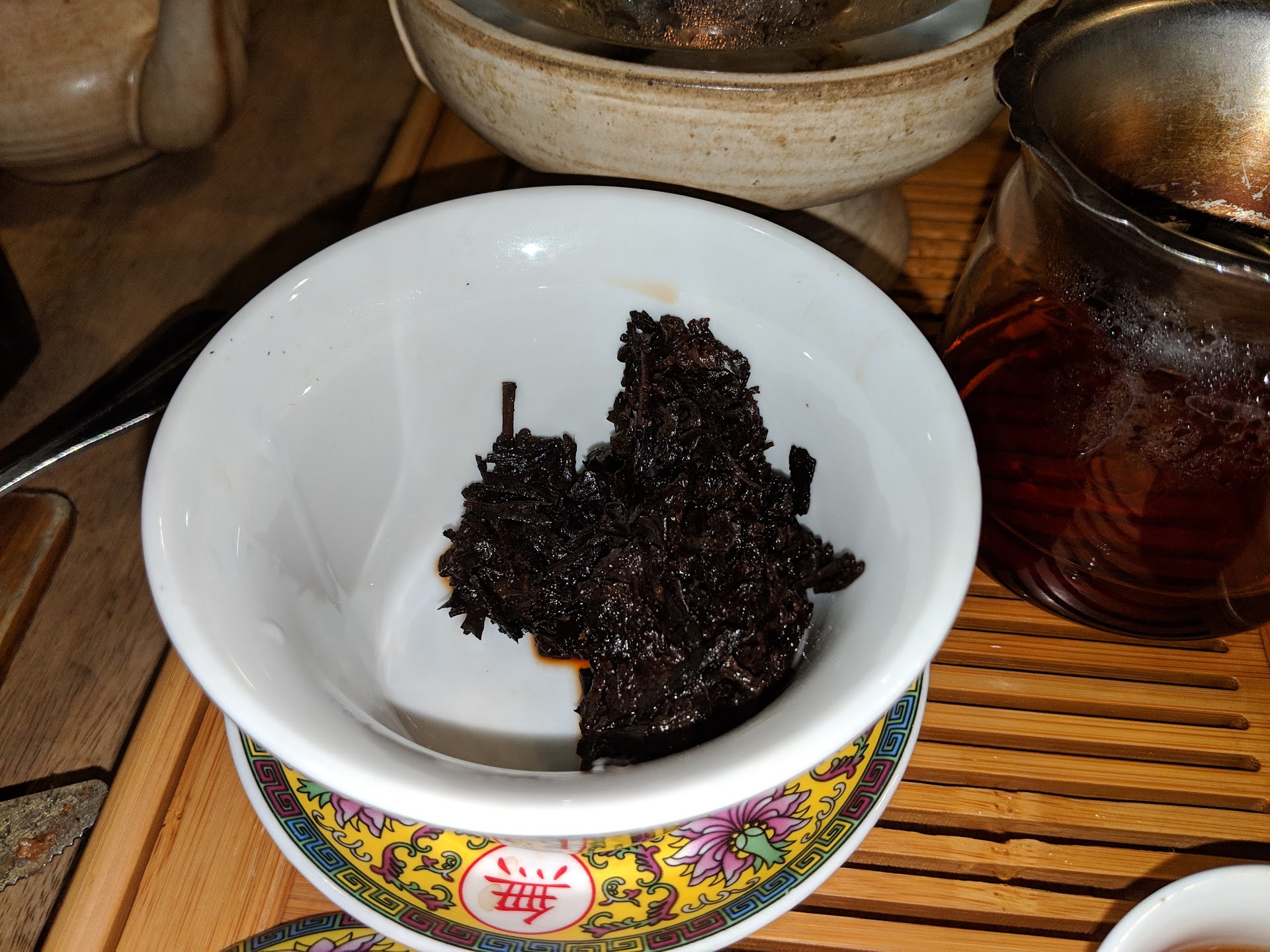The tea: The tea the associate made was a Pu erh tea called Lin Cang, which is pretty earthy in flavor (almost reminiscent of a mix between a black breakfast tea and a red rooibos). The tea was a medium-reddish brown in color and had a pleasant smooth flavor, without being overly bitter or aromatic.