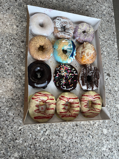 Read moreCool idea. They make the donuts fresh to order, so they're nice & warm. This isnt your run-of-the-mill donut shop. You choose single donuts, half-dozen, full dozen, or a bucket (I've no idea how many are in it...I didnt ask.) Then you decide what you want on them. They have a variety of toppings, drizzles, and sprinkles/crumbles listed on the wall menu - or you can choose from their current seasonal creations on smaller menus on the counter. The donuts are delicious as like I said,they're literally freshly fried and garnished. They're warm with a very lightly crisp outer layer. Our 5 year olds fave is strawberry topping with marshmallow drizzle & rainbow sprinkles. Our 11 year likes a variety of them, but tonight really enjoyed his maple topping with graham cracker crumbles & hot fudge drizzle. My husband almost always gets his with shredded coconut. Of the variety we had tonight, I liked the combo suggested by the cashier which was a mix of raspberry & blueberry drizzle. Reminded me of fresh pancakes or french toast with fruit compote. Tasty! They also serve coffees which are good. My husband is currently in love with their winter blend which is like vanilla, hazelnut and whisky flavor. I liked their riptide(think that was it), bold and smooth blend. Think they also do breakfast sandwiches, but never had them. We always get donuts. :) For an idea on pricing, we did a half-dozen, 2 large coffees, a chocolate milk and a white milk and it was...