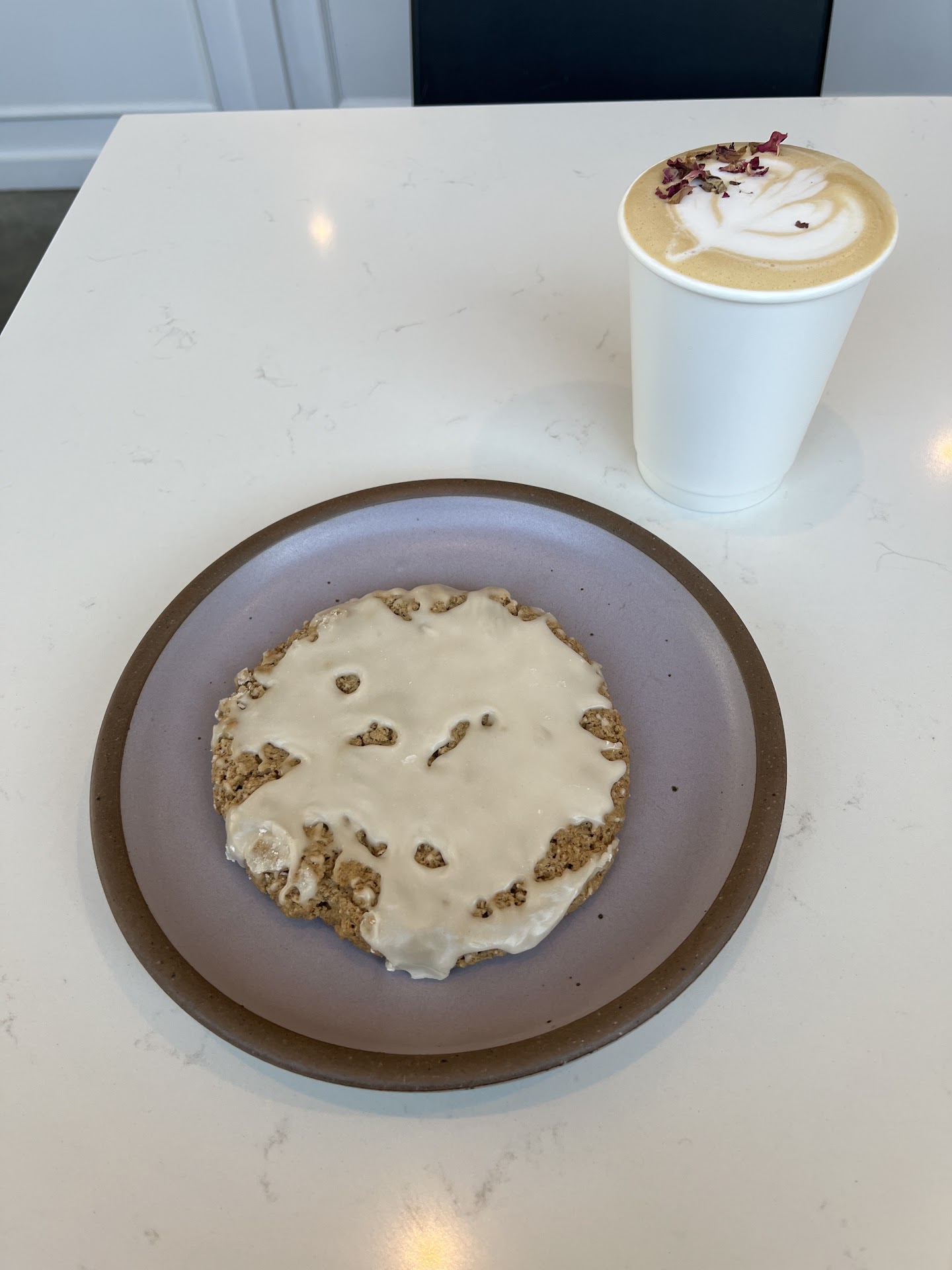 The Rose Honey Latte is one of the best lattes I’ve ever had, anywhere 🌹 ☕️. The disappointment comes in I guess they only offer one size coffee because though I brought my own mug, it wasn’t filled up all the way. I understand some places leave room, but for me to make a comment about it shows it was noticeably not filled (I’d say probably only like 75% filled, maybe a little more). The biscuit was amazing and fresh, another great thing about this spot is they get fresh baked goods from local places like The Rhu.