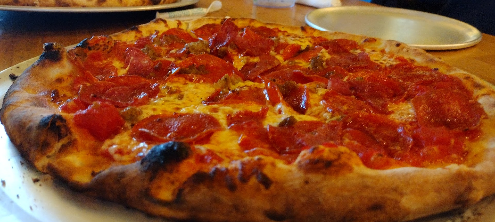 Read moreThis place has great potential!!! A few suggestions for improvement: When you sell a $6 beer, make sure it's full. If there's a head when you pour it, keep filling until the glass overflows the head, or wait until it settles and top it off. Fill your cups at least halfway with ice, especially when it's 100* F out. Get a soda fountain, why have the "save the planet" attitude and have drinks by the bottle with a recycling bin next to the fridge? Skip all that and just have a soda fountain. You've already got washable cups and biodegradable straws. Provide better value. $17 for a 12" pizza with few toppings is way too much. Take the same amount of dough and roll a 14" pizza. Double the toppings (not the sauce) and you'll have something. The crust is delicious and you've got good combos of toppings for good pies. Haircuts, shaves, and showers. It's one thing to have the grungy gen X/Z yuppie style, but when you're preparing food, you need to be clean, and clean...