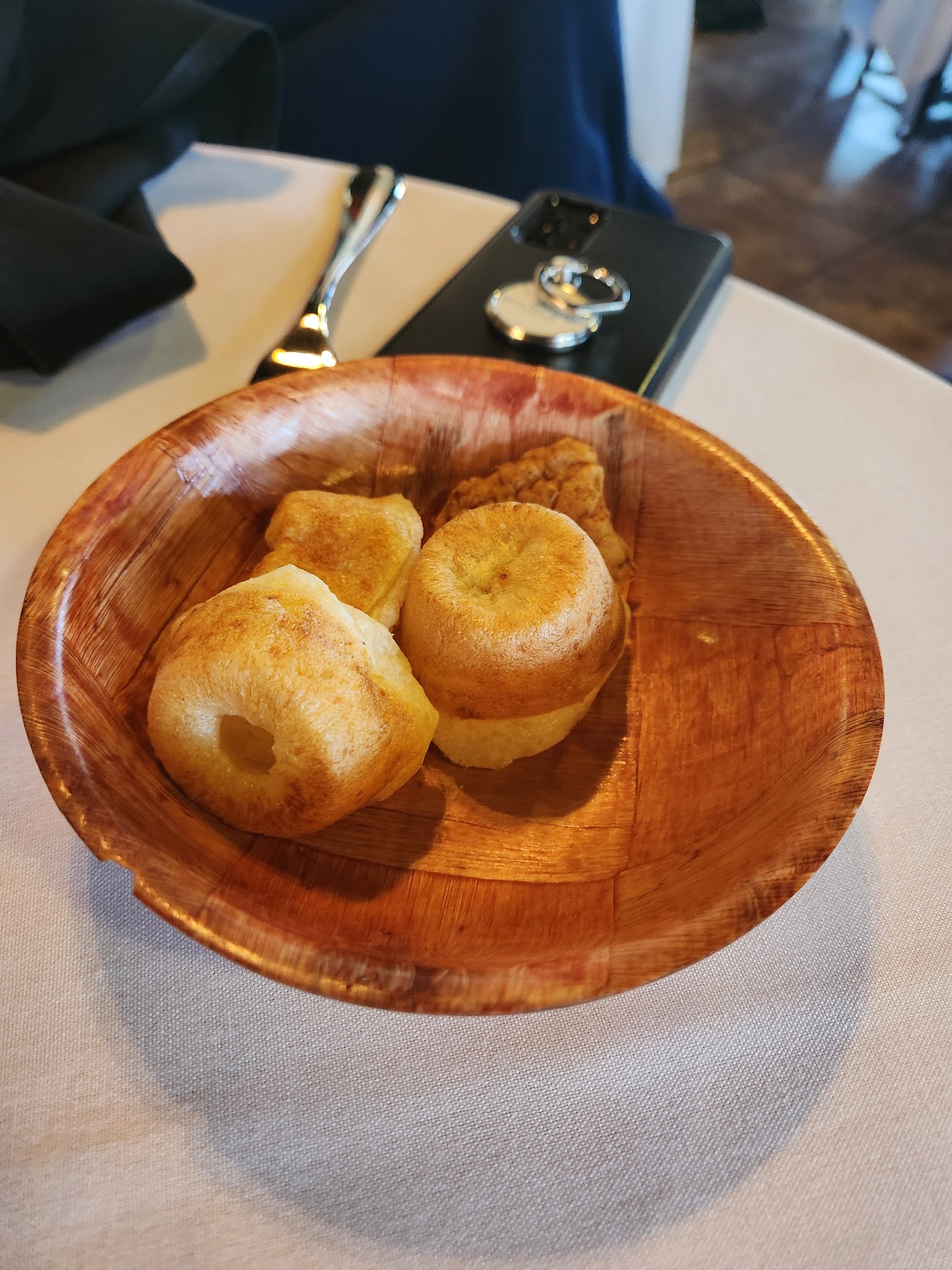 Meal also came with a small side of Brazilian cheese bread, which I absolutely love. It also comes with a plate with fried bananas coated in cinnamon and sugar which were delicious.