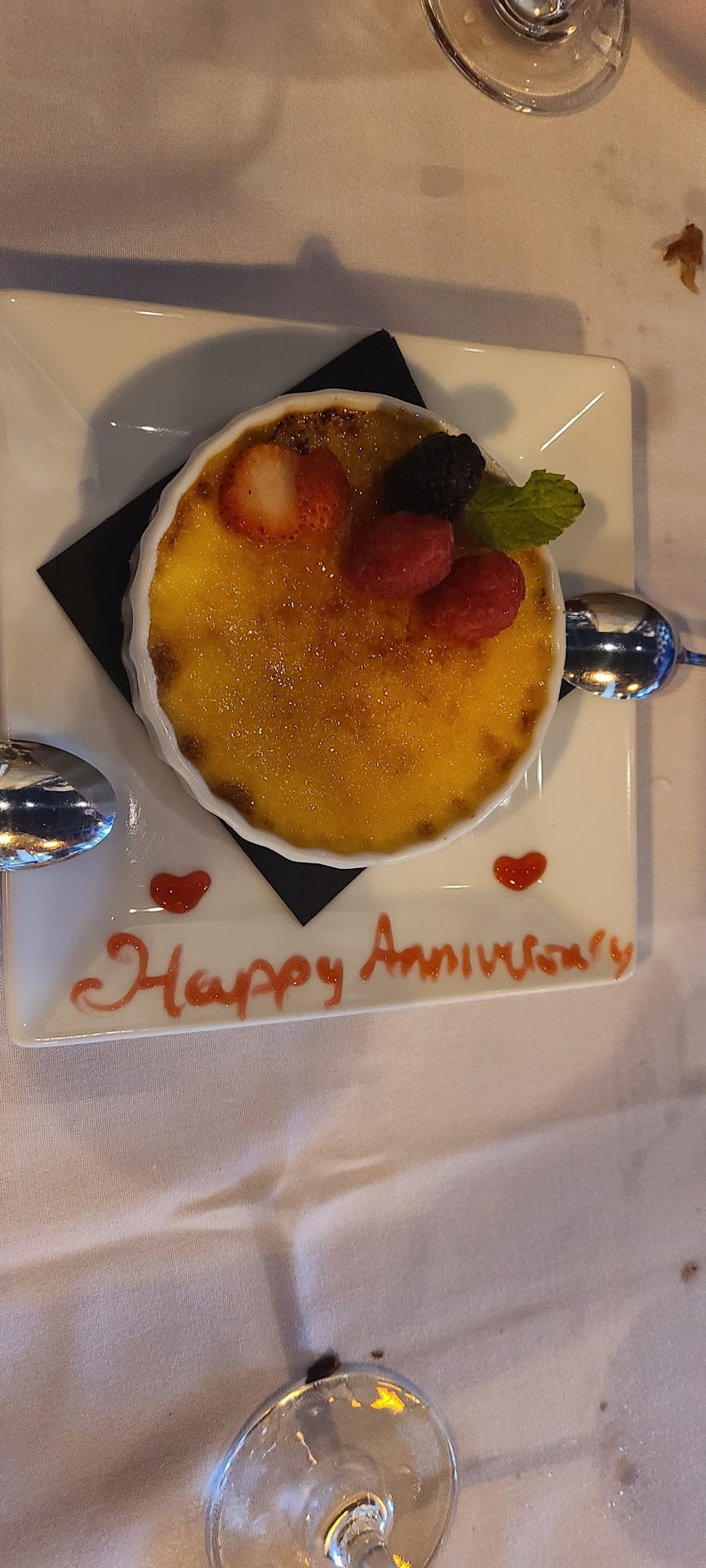 When I made the reservation online for our dinner, it asked me if we were celebrating anything in particular. I marked that we were celebrating an anniversary, and at the end of our meal the team brought out a creme brulee for us for dessert that said happy anniversary on the plate. It was such a wonderful Extra Touch!