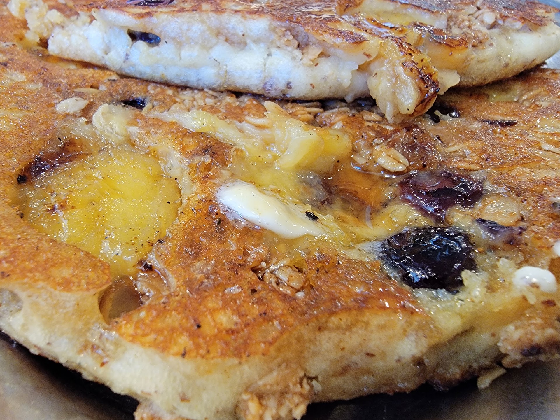 As my food came out my eyes lit up from glee and it looked amazing. The banana, blueberries, granola pancakes were heavenly. I highly recommend this combination 👌. The eggs 🥚 you could tell from the taste they were fresh farm 🚜 eggs because I grew up eating them. Then the hashbrowns. I'm am not sure of all the ingredients but wow they taste good my taste buds were on overdrive savoring every bite. I have to admit my eyes 👀 were bigger than my stomach but wow it was good.