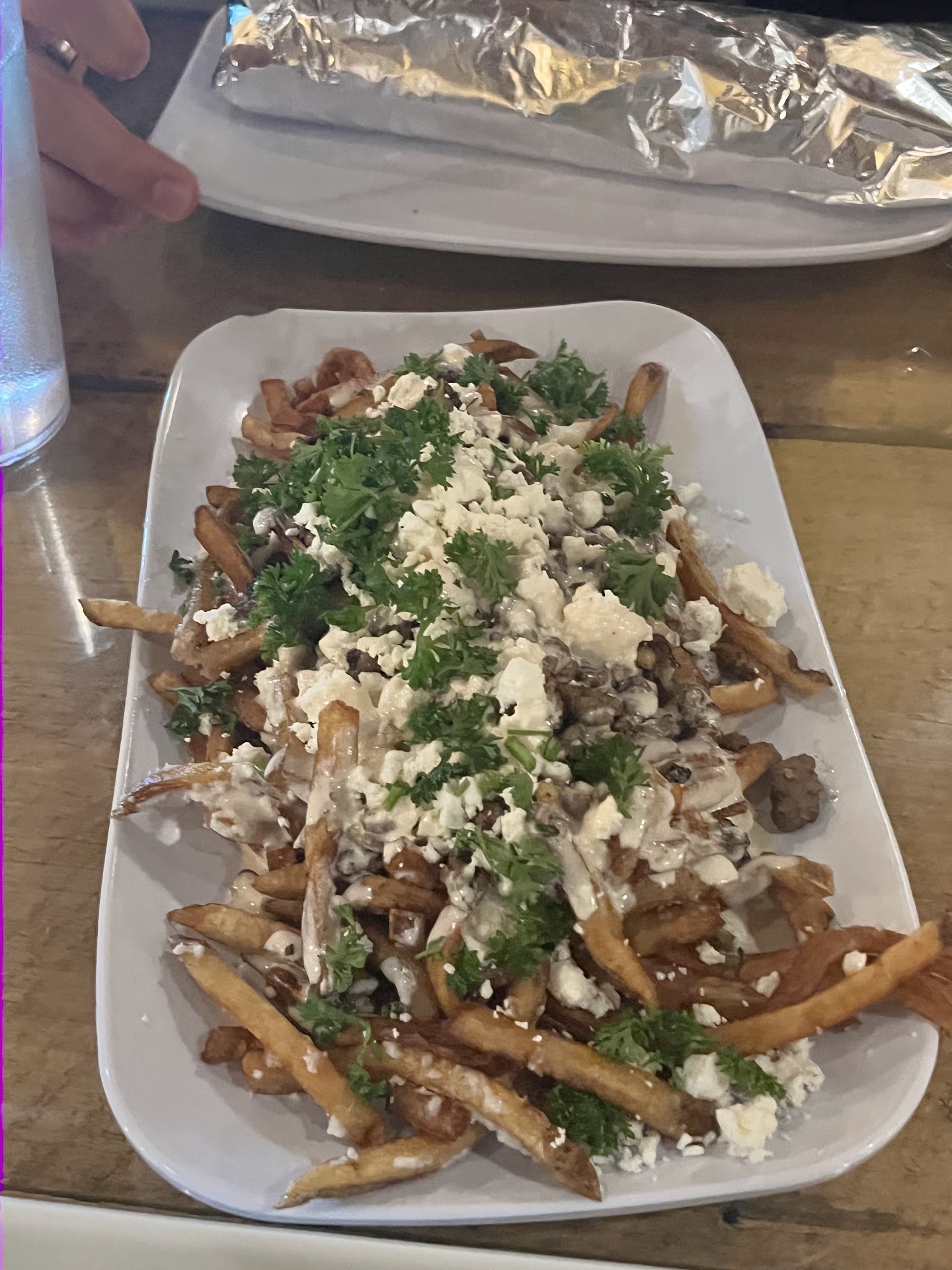 Read moreMy boyfriend and I stopped in for dinner after a long day snowboarding in Maggie Valley- we were hungry!!! We deliberated over the menu for a bit but ordering the Lebanese Poutine to start was an easy choice. I also ordered the fattoush salad with chicken shawarma and feta. He ordered the lamb kibbé pita wrap. Our server was super helpful, helping me choose what to order when everything looked too delicious to decide. The poutine was fantastic. The fries were the perfect size and crispiness to fork a pile into your mouth with ease. The sheep’s milk feta was deliciously tangy and the lamb hashweh was full of flavor. I didn’t try his wrap, but he was very pleased with it, and kept adding fries from the poutine to his bites. My salad was refreshing and filling alongside the fries!! I ordered a small and it was plenty for one person. Add a protein! The chicken shawarma was flavorful and tender. We grabbed some treats on the way out, I got the vanilla rose nougat- very strong in rose flavor that first punches you in the face and then grows on you as the sweet chewiness melts in your mouth. I had a bite of the baklava and it was my first so I can’t speak on it from a comparative point of view but I thought it was quite tasty! I was pleased with the kind service, clean and cozy atmosphere, and delicious food that felt like a warm nutritive hug. I don’t know what took me so long to try Gypsy queen but I will...