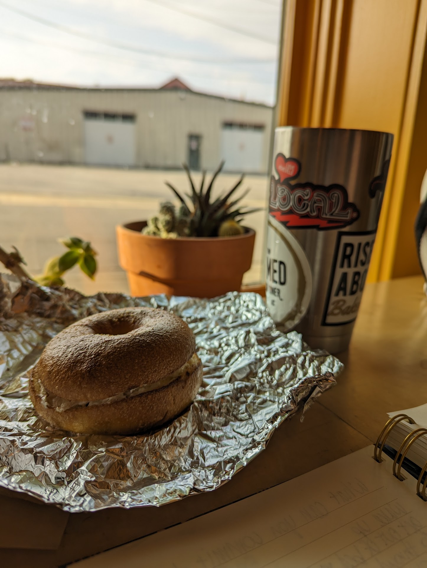 Read moreWe came here because this Cafe allows digs inside and we were not disappointed. It's a bit sway from the center of Asheville life so it was pretty quiet on Sunday morning. The place is small and doesn't have a lot of seats; it was a couple of tables, some high tops, and some weird but fascinating seats that it looks like you are supposed to seat with your legs crossed (??? Need to see them to understand what I'm talking about!). The baristas were nice and professional and the service was fast. The coffee they use is very different from the one you may find elsewhere but it was good and the cappuccino was delicious with a perfect foamed milk that lasted till the last sip (I chose whole milk). The ham and egg biscuit was good and they managed to make it look gourmet even if it's such a simple dish. The gluten free/vegetarian muffin was delicious and filling. I was really happy with this place and might come back if we are...