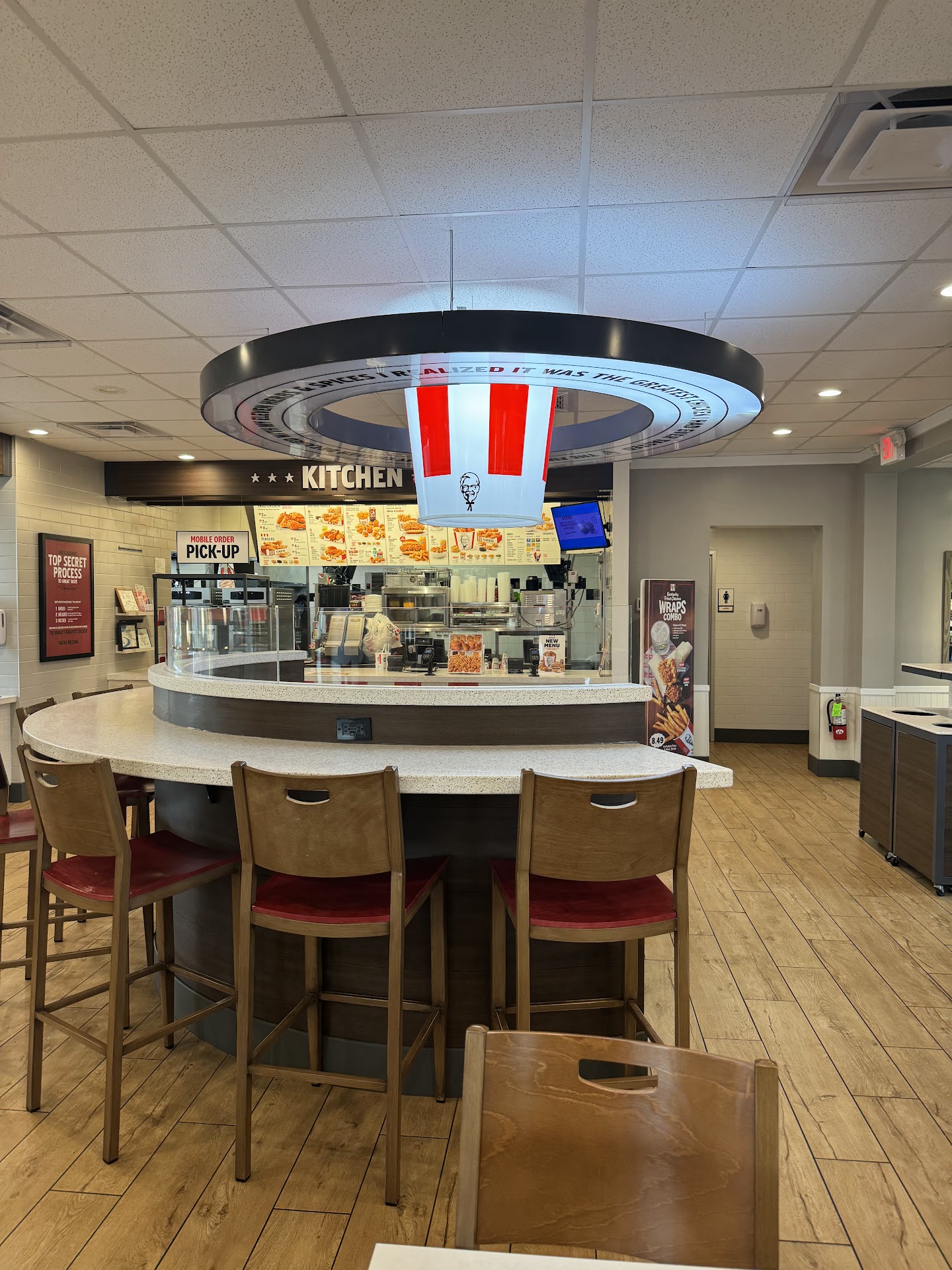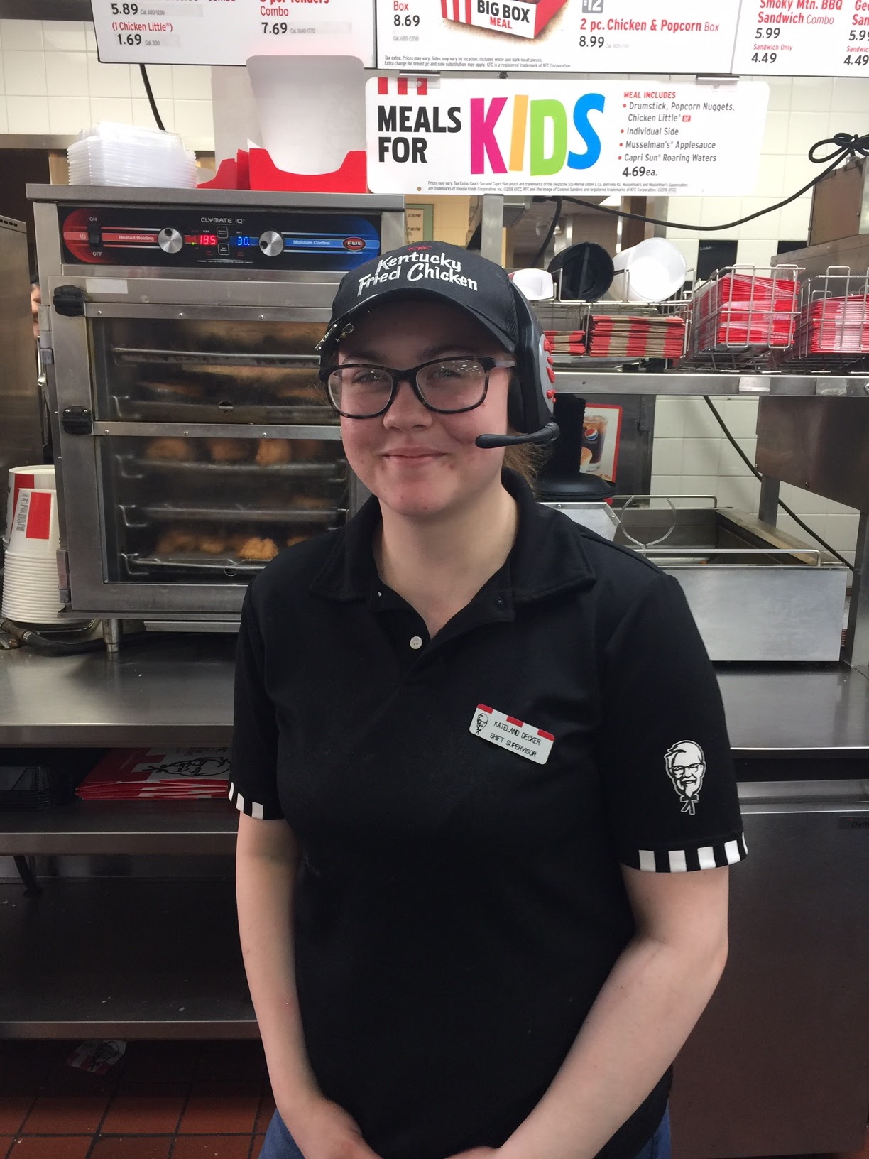 This KFC has a Buffet which I have never seen before in a KFC. Sorry if it's normal to you but I thought it was a very unique feature! The staff is AMAZING! they are very friendly, and both times I have been, we were overcompensated from something small! The first time, a counter worker said it would be 10 minutes for more of the chicken type we wanted, but within a minute, the manager had our food ready. We were just a little confused because we thought the original recipe was short a few pieces and that's why we needed to wait 10 minutes. So the manager said that's fine if you guys want to wait for the fresher chicken and for the confusion here are some drinks while you wait. He didn't stop there, he also through in a dish of okra and two raspberry pie desserts since the buffet was coming down! The second time, we would have had to wait 10 minutes because our meal was 1 biscuit short (I thought it was 2 biscuits short so I asked if I could just get a side instead). She gave 2 extra cookies and the extra side and another piece of chicken! This KFC staff knows the importance of customers, and to be treated more than fair from not only a manager, but a crew member as well let's me know this KFC is one of the best! Hands down, the best KFC I have ever been to! Thanks for making our experience great! I would like to add we have came in closer to closing time both visits, I don't want anyone to think they're regularly out if food and you have to wait every time! I believe we just came in at a bad...