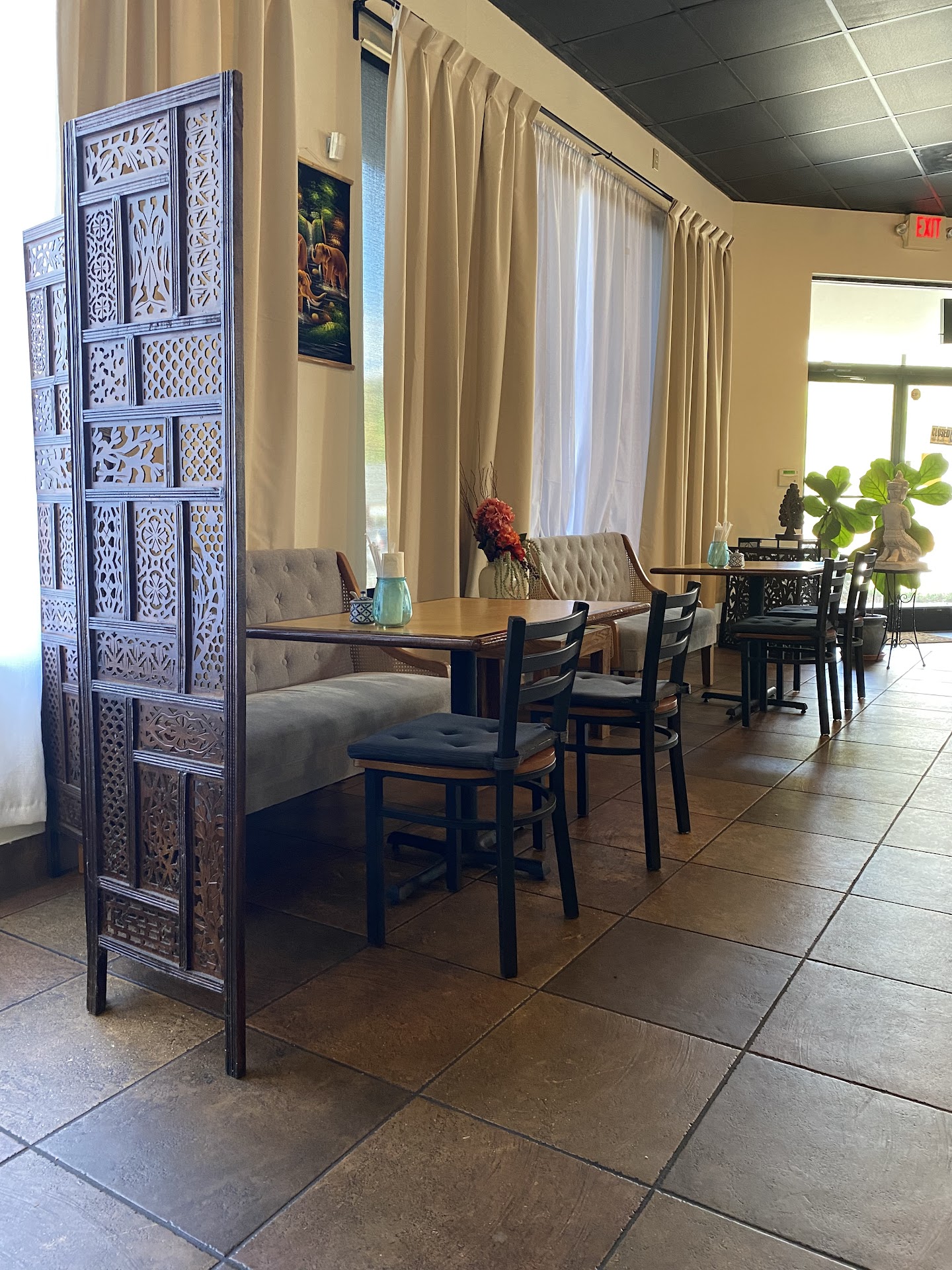Read moreSomeone told my husband about this restaurant. It was my first visit to this little gem. I have passed this restaurant many times in the strip center, and I don’t believe I have ever seen it. People seem to know about this restaurant, though, because it filled pretty quickly after we arrived. I loved how the perimeter tables had a comfortable, upholstered booth along the wall, and chairs in front. We ordered the Chicken Satay as an appetizer. It was different from what I was expecting. It came as plain, flat pieces of breast. The sauce was prettily presented with small sliced vegetables. But, it was unexpected that you could see stringy trails when you dipped from it. This had a very unappealing look to me, and I would not order again. I selected the Garlic & Black Pepper for my entree and added Chicken. This more than made up for the appetizer. It was delicious! I would order this again, the next time I went. The flavors were just the right depth, without any one being overpowering. And, it came out steaming hot. The service was very pleasant as well. One very uncomfortable experience during our visit, was that it was freezing cold inside when we arrived. I will ensure I have a warm jacket on our next visit! That is the reason why I rated 4 stars on Atmosphere, otherwise, it would...