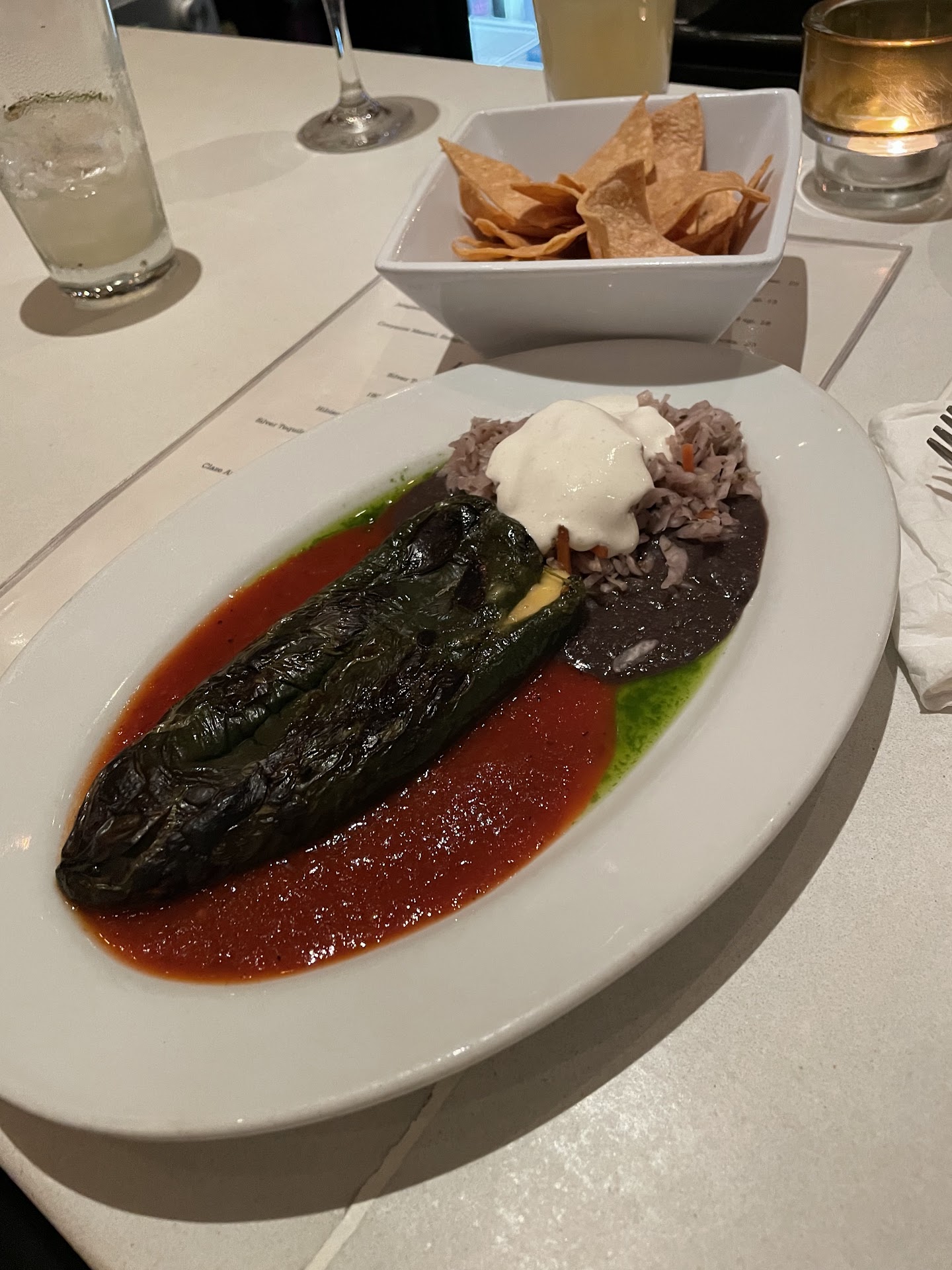 Cons: I was really disappointed with the margarita I chose. I have had caliente margaritas on many occasions (this one also purportedly offered a hint of berry). With other Caliente margaritas, the flavors are exquisite and the profiles complex. This just tasted like a regular margarita with maybe a little spice. The hint of berry must’ve been much more of a whisper, because I did not find it to be present Overall pretty disappointing.