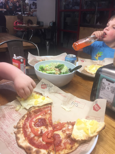 There have also been a few mistakes on our orders (some toppings were left off, or there were incorrect crusts, or a glaze was added on the wrong pizza) and we’re not quite sure how to rectify that. By the time we return home with the pizzas and discover the error, and call MOD, they say they will “make us a new one”, which is great, but we’re all sitting down to eat, and we really don’t have time for that. It would be nice if we received a coupon for a free pizza for a future order, but that is never offered. Even after we explain that we all just sat down and we don’t have the time to drive back there, (because everyone is eating dinner together as a family and getting ready to watch a movie or go out etc)., we are still only offered the option of having them remake the pizza. This has happened a few times, and, in a few instances, there were toppings or crusts on a pizza that one person could not really eat, so that family member ended up making a sandwich. The pizza did not go to waste! Somebody else ate it, but it was not the pizza that was ordered. So my suggestion would be to offer a coupon for a free pizza when the guest calls to report an incorrect pizza.