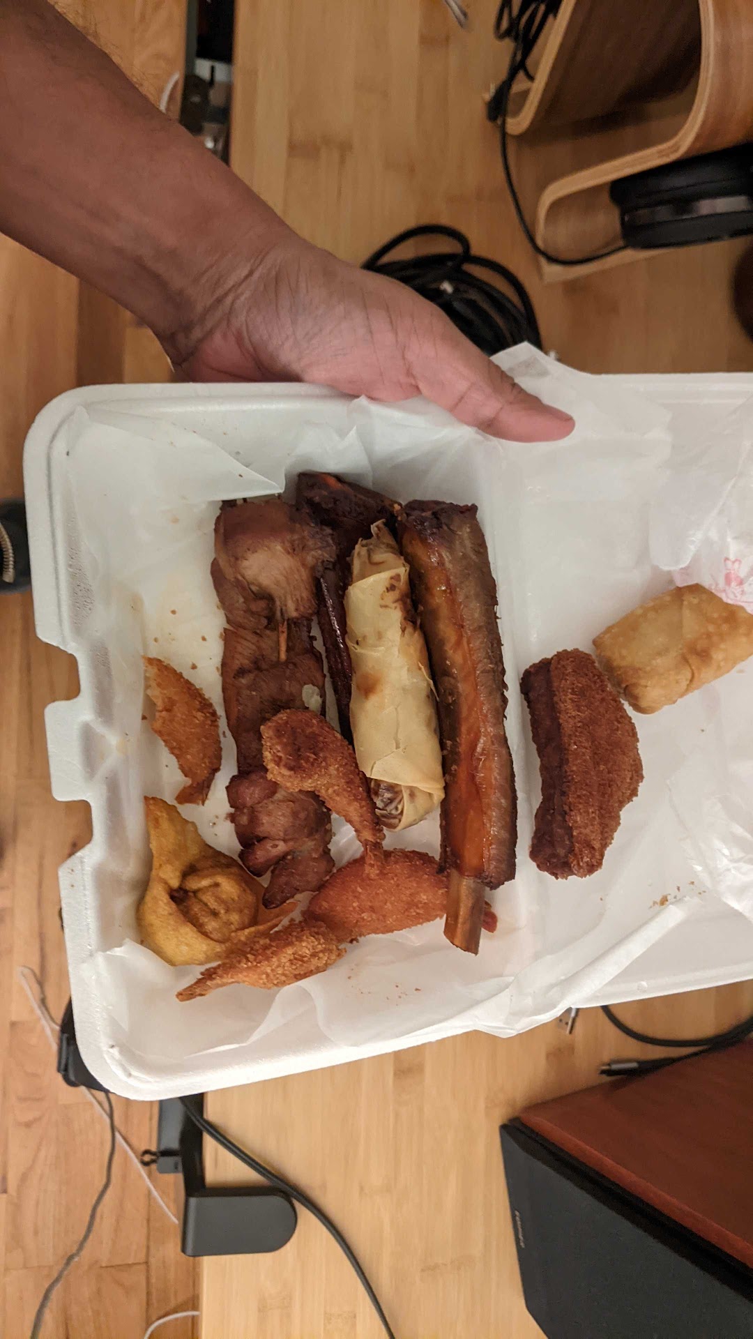 I brought lunch to my friend that just got home from a lengthy hospital stay. He insisted on New 1 China because they have the best chicken wings in the city 🍗. They are whole fried chicken wings unlike most places that use wingettes and drumettes. He also got shrimp egg foo young and egg rolls. He thinks the egg rolls are handmade but isn’t sure, they aren’t his favorite and he was wondering why he ordered them 🥚. I tried some of his steamed rice with the gravy to see if I may want to order from there in the future- I was pleasantly surprised! The gravy is a little sweet and a lotta savory, it’s really good. He said the egg foo young here is consistently good which is why he eats here so often. Prices weren’t bad and you can order online at beyond menu which makes pickup fast and cashless 💵. I asked him what rating should I give them and he said 4.5 stars but since it’s no 1/2 marks then 4 is suffice. If they improve the egg rolls and make non yellow fried rice he would give them 5...