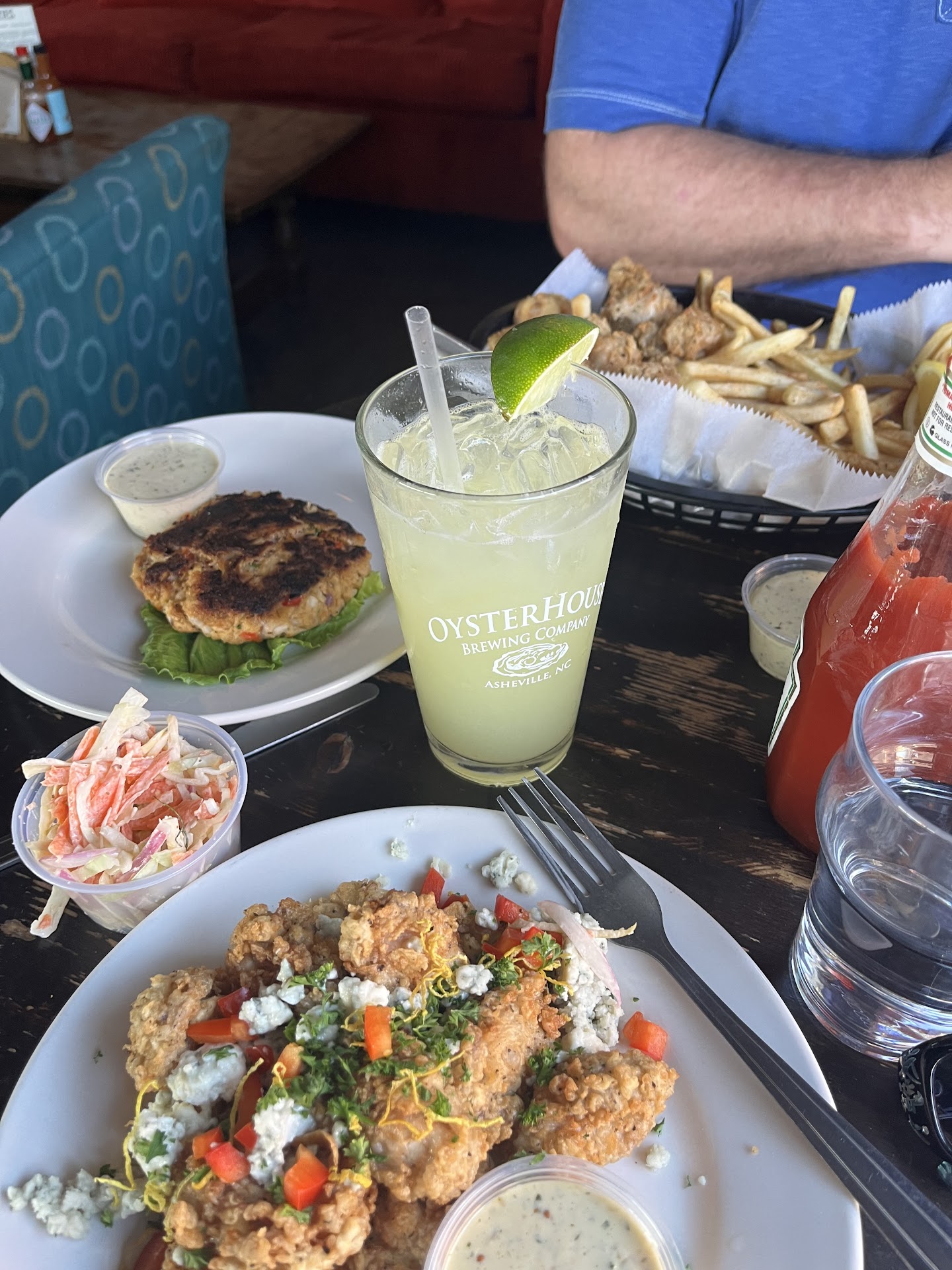 Read moreMy girlfriend and I come from BluePoint NY and so we were skeptical about the quality of the oysters here at Oyster House Brewing Company, however ALL of pur skepticism went out the window with the first appetizer that came out. First their oyster shooters if u ask for titos is spot on delish, u can tell right from the start their food is basically right from the lake fresh. The Oyster Bienville was like a bomb of flavor in my mouth. My girlfriend got the B.O.L.T. WHICH IS A TRADITIONAL B.L.T but with Fried oysters and she explained it like going to a seafood carnival. I do NOT recommend the gumbo as the flavor was lacking and made with an abundance of pepper but the Fish and chips definitely made up for it. Not your traditional fish and chips where most are made with cod and battered to the point where the fish is unrecognized, this plate was special. Made with Catfish and Panfried the freshness in flavor was amazing almost like it was caught this morning. Not completely battered but breaded you can tell this was a tual catfish going into your mouth. The remoulade that it cane with was the BEST I've ever tasted and homemade. In fact we had to ask for extra just to dip our fries in. The ambience was exactly perfect for us,and the waitress De was sooo nice and friendly I felt like I was home eating home cooked fresh seafood. This place is A MUST when visiting the West Asheville area... My new favorite...