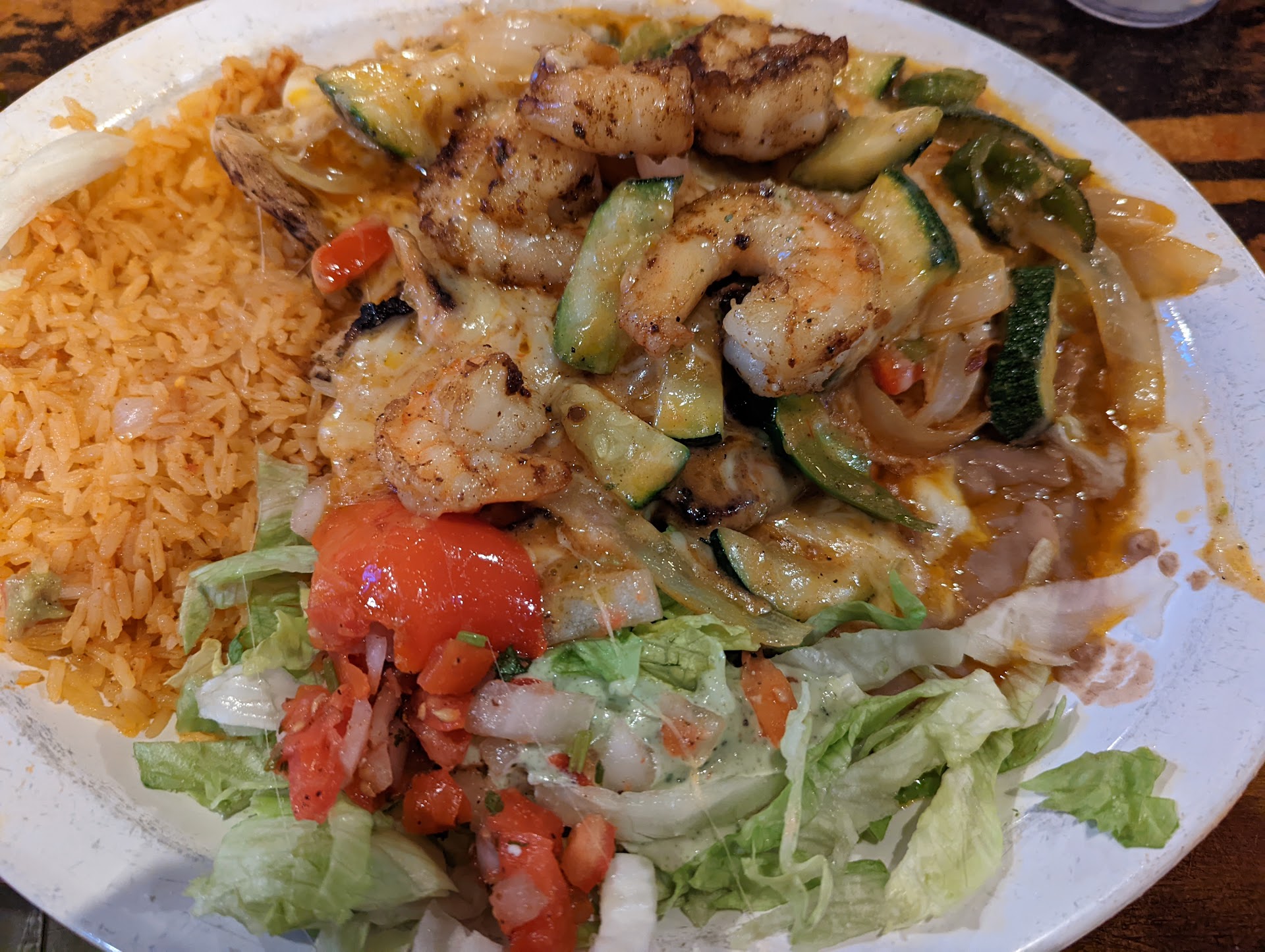 The menu item I ordered was new, or so I believe anyway. Chargrilled Chicken & Shrimp, with Veggies and with a Cheese Sauce. I do love the cheese sauce. My only issue while ordering was that I had to use the light on my phone to see the menu. A little to the right, maybe. A little to the left perhaps I could see. But at the spot in that chair. Well, after all, it was almost Valentine's Day. For a hopeless romantic, I guess the lighting was adequate.