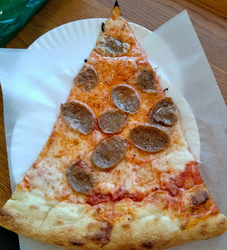 Read moreFirst time guest. Tiny bit difficult finding parking. We went in. Ordered at the counter. Very friendly staff! I ordered a garden slice of pizza. My husband ordered a slice of sausage pizza with a drink (thinking it was pink lemonade). We had no idea that what he actually ordered for his drink was a can of beer. (In large letters the can said pink lemonade, but in small letters it said beer, which we missed reading.) He realized it, once we sat down and he opened it. Since we don't drink alcohol, we didn't realize we had to ask beforehand if it contained alcohol. Our mistake (we simply threw it away since we had already opened it). I had mistakenly imagined the garden pizza was loaded with veggies. I wasn't impressed when I saw my slice. Yes, it did have veggies, but very scant in portion, in contrast to other garden (veggie) pizzas I've had from other restaurants. Being a $7 slice of pizza, I did not expect a tiny portion of veggies for the price paid, it just wasn't very filling (it did have lots of cheese and dough). It tasted more like a slice of cheese pizza. (Also.. my pizza crust was quite burnt; my husband's slice was dripping with oil.) They did not provide a fork and knife, nor a straw for our canned drinks. I admire that though. Perhaps they are minimalists that are conserving on plastic waste, which is good! Tip: If you go and eat it there though, bring your own fork, knife, and straw, IF you use it. I probably wouldn't return. Being a vegetarian, it didn't fill my appetite. They were very friendly people though. I'd go back again if their garden slice simply had a bit more amount of veggies. We spent a total of about $27 for 2 slices of pizza, 2 drinks, and 1...