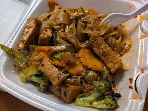 I was hungry after driving straight through from MN, to visit family in Charlotte, and just wanted something more than a protein bar. When I got my meal, it was wide rice noodles, not rice noodles as stated on the menu. Accompanying the wrong noodle was, frozen broccoli that I watched her pull out of the freezer. The thing that put me over was all the dried basil that she shook out of a container that I'm assuming she bought at Cosco . ( see the photo, that may be why she charged more, it's SO much basil)