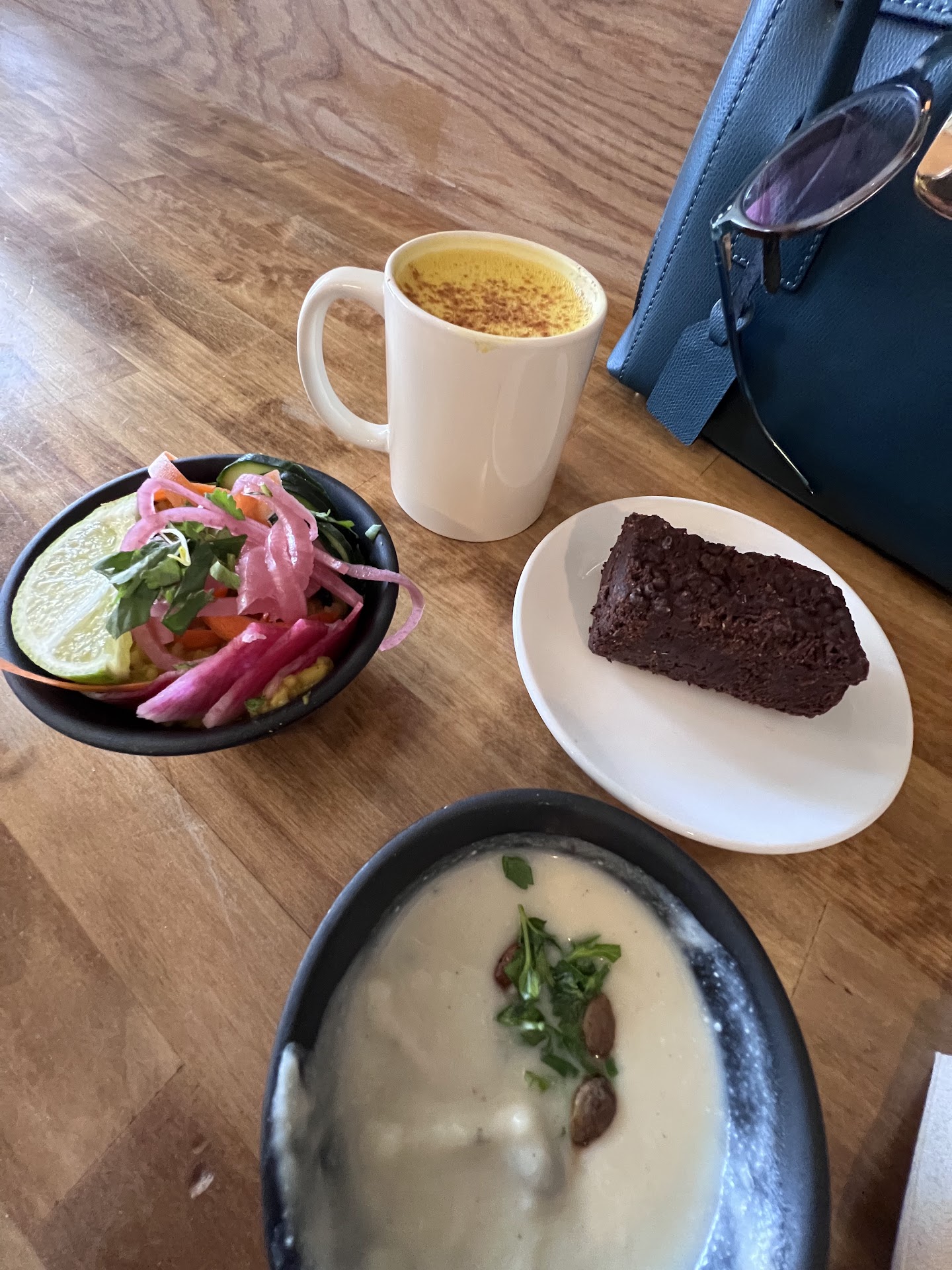 I was doing a 2 week detox diet which led me to explore new vegan/veg restaurants. I dropped in to grab a sippable broth, and their nut mylk.