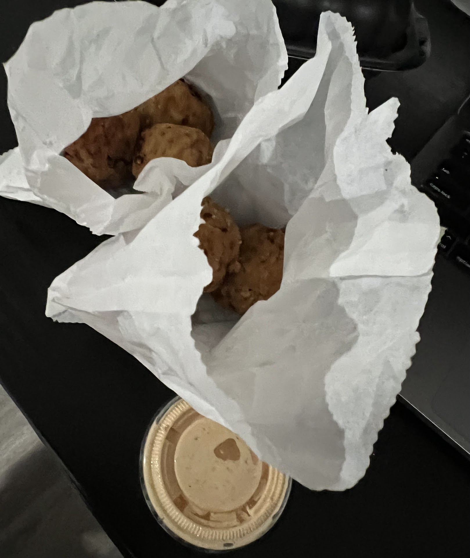It feels petty, but it's not. Our food is incomplete and we spend too much for this, and when I tell her we didn't get the sauce for two orders of poppers, she only brings back one of the small containers. No. Done. Lost a customer (actually, probably more than a few) over a spoon full of sauce they didn't want to give to us. I won't be giving them my business again.