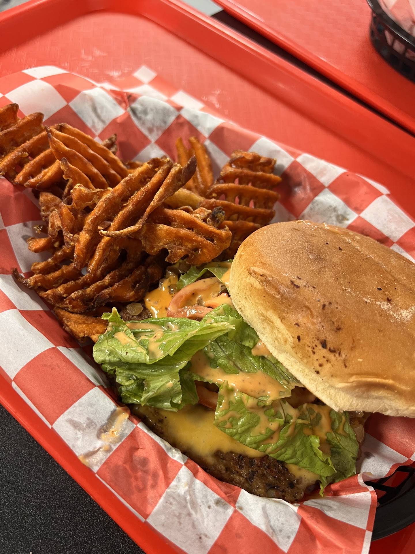 Ā Ā Ā Read morePretty frustrating experience all around. I tried ordering my burger "plain with only onions" which was a huge confusion with the person taking my order. I wasn't sure if I was just being unclear or the person taking my order wasn't understanding me so I just told her she can just give me a plain burger if that's easier. She went ahead and did that but still asked me if I was sure I didn't want anything on the burger which was uncomfortable. My partner ordered everything as it came. We sat and waited for 30 minutes (genuinely not exaggerating, we walked in at 12:30 and it had gotten to be around 1) and then the staff came over to once again confirm that I did not want anything on my burger. I said "completely plain except for onion please" and they told me that there is some onion inside the patty... So I just said okay perfect so they would make our food. Usually, I appreciate double checking, but it was INCREDIBLY frustrating that they hadn't started making our food for 30 minutes!! Other people that had ordered around the same time as us were visibly irritated and showing the cashier the time on their receipts. They also seemed to be forgetting many people's sides/drinks (people were walking up and requesting their missing items). I was paranoid that maybe we were rude enough in some way to warrant "forgetting" our ticket but we still tipped 30% so I'm really not sure. We also did not order a lot at all, just two burgers and fries. The burger ended up being fine (after waiting 40 minutes) but I did have to put my own onions on at home. They thanked me for our patience when they handed me the bag, which is appreciated but c'mon now. We were walking out at the same time as someone who had ordered very recently which also left a sour taste in my...