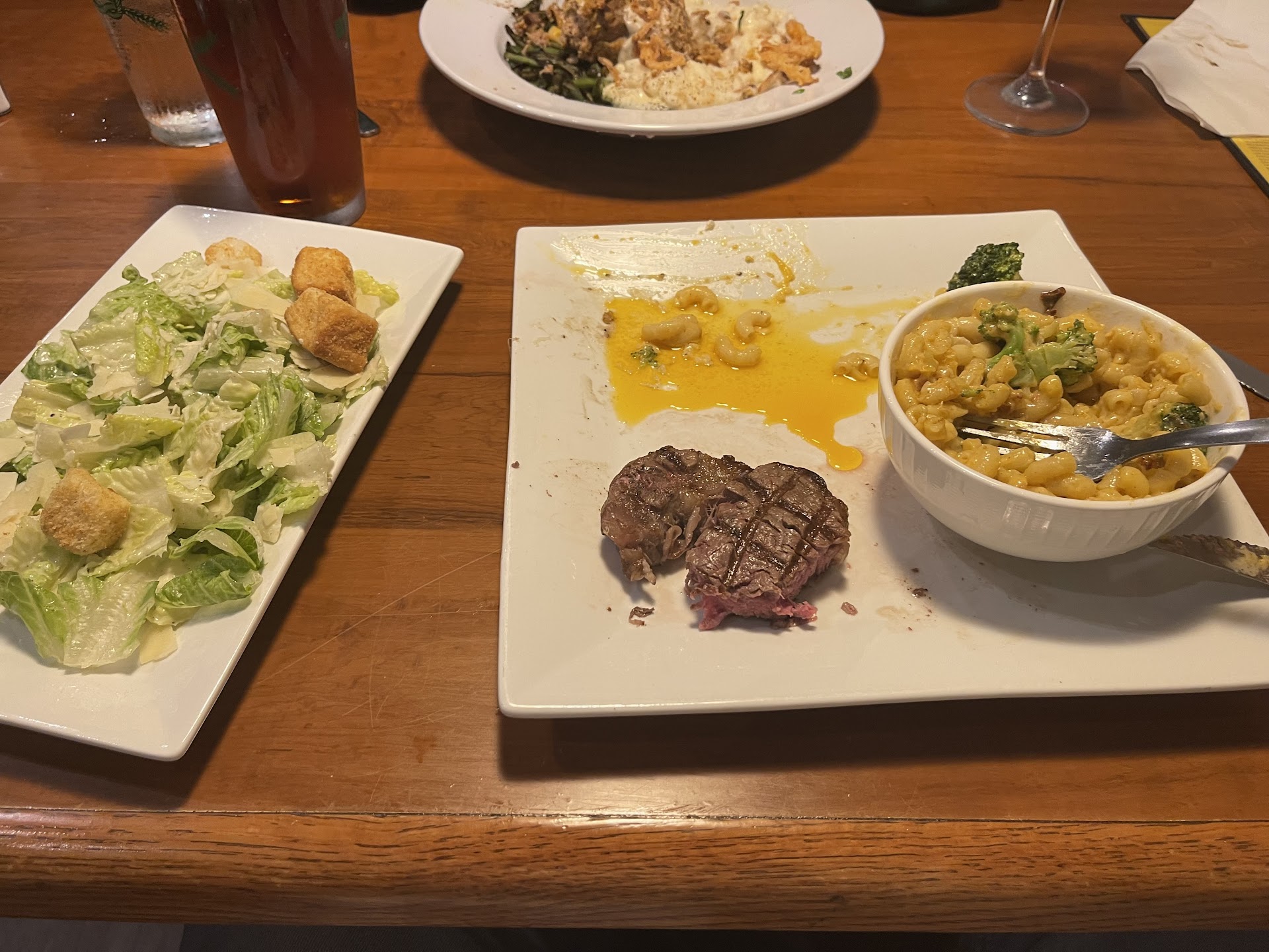 Read moreI heard the fries were good but unfortunately didn't get to try them, despite ordering them, when I went. Ordered poutine appetizer, entrees and teas while we looked over the drinks menu. Didn't see the waitress for 45 minutes. Drank all our tea and ate the ice cubes while waiting. She finally came back to let us know our steaks would be out shortly. I asked about the appetizer and she seemed surprised and demanded to know what appetizer we thought we ordered. Told her and she said she didn't remember that but could go put it in. I told her not to bother at this point if the food is coming out soon. We had to ask for drink refills despite our empty cups being the only thing on the table. She brought me my salad, which was warm and mushy on a warm plate. At that point I asked to speak to a manager. He came over saying "So my waitress says you're mad she forgot your appetizer?" Uh no, I'm upset that I was given potential food poisoning on a plate. I asked if it was a normal procedure for caesar salads to be served warm on a warm plate? It was warmer than room temp as if it had been sitting for a while on or near the food prep area. He did apologize and get a new salad but overall I didn't care for his attitude either when he just went straight to assuming it was about a missing appetizer. I can overlook that. The empty drinks thing sucks. We both had mixed drinks picked out to try we didn't get to order cause the waitress never came back for 45 minutes. But potential food poisoning is where I draw the line. I haven't been back since and wouldn't recommend it to anyone.