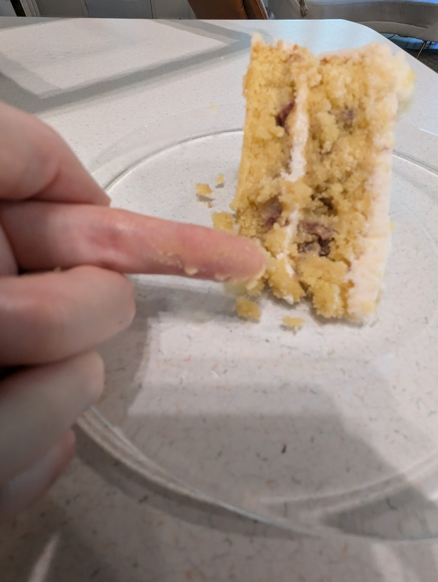 and to be clear, I was willing to try and get the cake back from my friend. when she notified me that her plane was delayed and she was still at the airport, I was on the highway from West Asheville within 10 minutes, driving to the airport to go get the cake. I was maybe 15 minutes away when she notified me saying that she had to board her plane before I would make it. had it not been for that, I was well prepared to take the cake back to the business so they could taste it and confirm that there was no lemon flavor in it. As I said to them in my email, I had no reason to lie or misrepresent what I received.