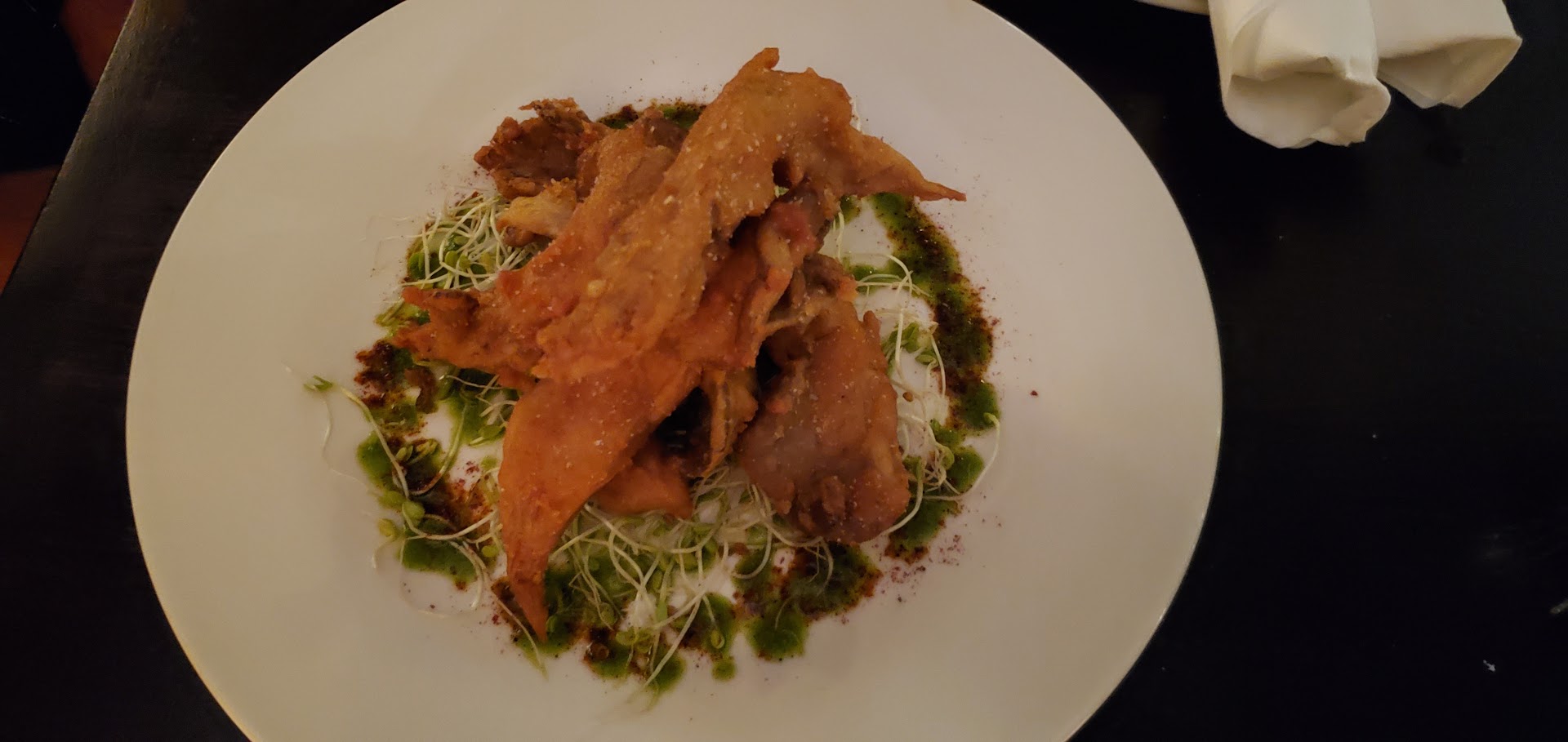 As for the food: The tater tot "appetizer" and the pork cheek "entree" were both really good; this is not a place for those who want quantity, but for those who want high quality in a small amount. But dessert was another matter. I should have backed away when I saw that this "apple candy cupcake" included "parsnip ice cream" but I hoped it would not be a problem. Boy was I wrong. This is one of those desserts with a strong savory element, an evil trend that I hope will be quashed soon, preferably by allied forces storming some French beaches. There was very little sweetness to the dessert, the cupcake was dry, and I had an aftertaste of celery in my mouth. Not good, not good at all.