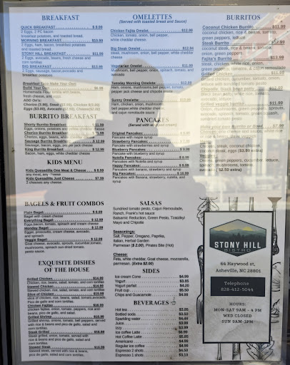 Read moreWhat a wonderful, unexpected treat and surprise. My wife and I were visiting from Ohio and planned to eat at another cafe up the street, but a nice lady noticed our dog, ended up chatting with us, and suggested we try Stony Hill. We did and we were so glad we did. She introduced us to the owners, made recommendations, and then we ordered. We ate outside because of our dog. Yet, the owner took so good care of not only us, he came out with a bowl of water for Jasper(our dog) and then came out with a piece of bacon for her. What a nice gesture! Our food was so delicious. My wife and I shared the breakfast sandwich and the egg and grits breakfast bowl. Hands down one of the best eggs and grits dish we ever had! We would highly recommend this new gem...