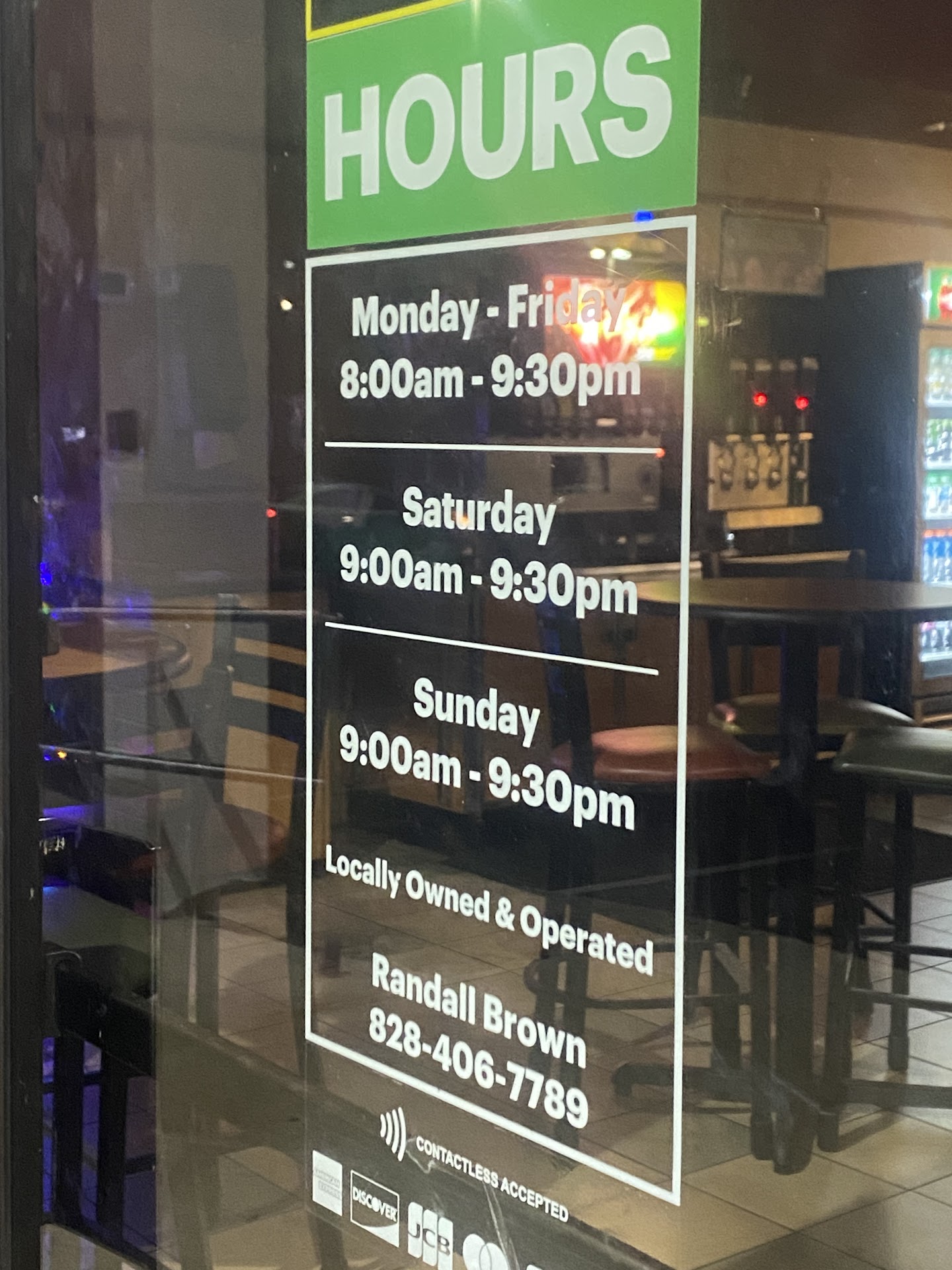 Read moreThis place is awesome! They don't know my name, but they know my face and know my sandwich order!! Subway club, super heavy on the pickles, and super super heavy on the oil and vinegar!! Awesome workers and just a really good place to get what I want in a sandwich without all the glitz and glam! One of the best Subway restaurants I have ever visited! I will not order from any other Subway in Asheville. This is the best one. Everything is fresh, everything is clean, and everyone is not angry about being there! Super nice workers!! (And that's hard to get in restaurants here in Asheville... Most wait staff, cooks, and cashiers seem ticked off and make you feel like you're a burden... Not so...