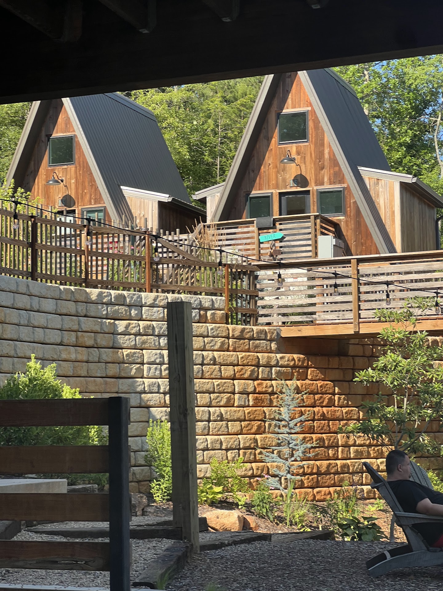 This is just the kind of thing the river and greenway through Asheville needs! An easy place to jump off and grab a drink and some great food. Beautiful lodge and big outdoor deck - with lots of outdoor picnic tables and even a field to hang out in...or just load all the provisions you grabbed back into your canoe and keep moving on! What's not to love? Hoping to see this overlook deck become its own scene. Good friends, good views,...
