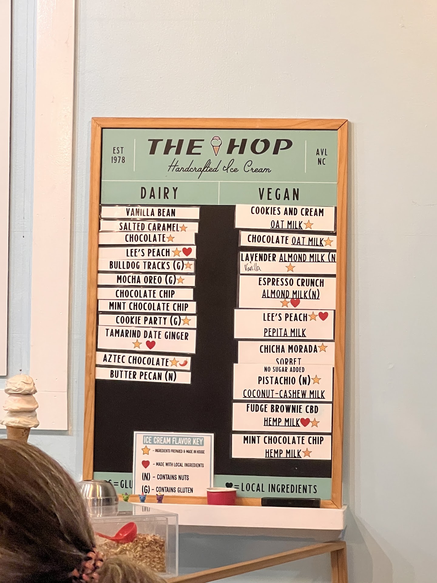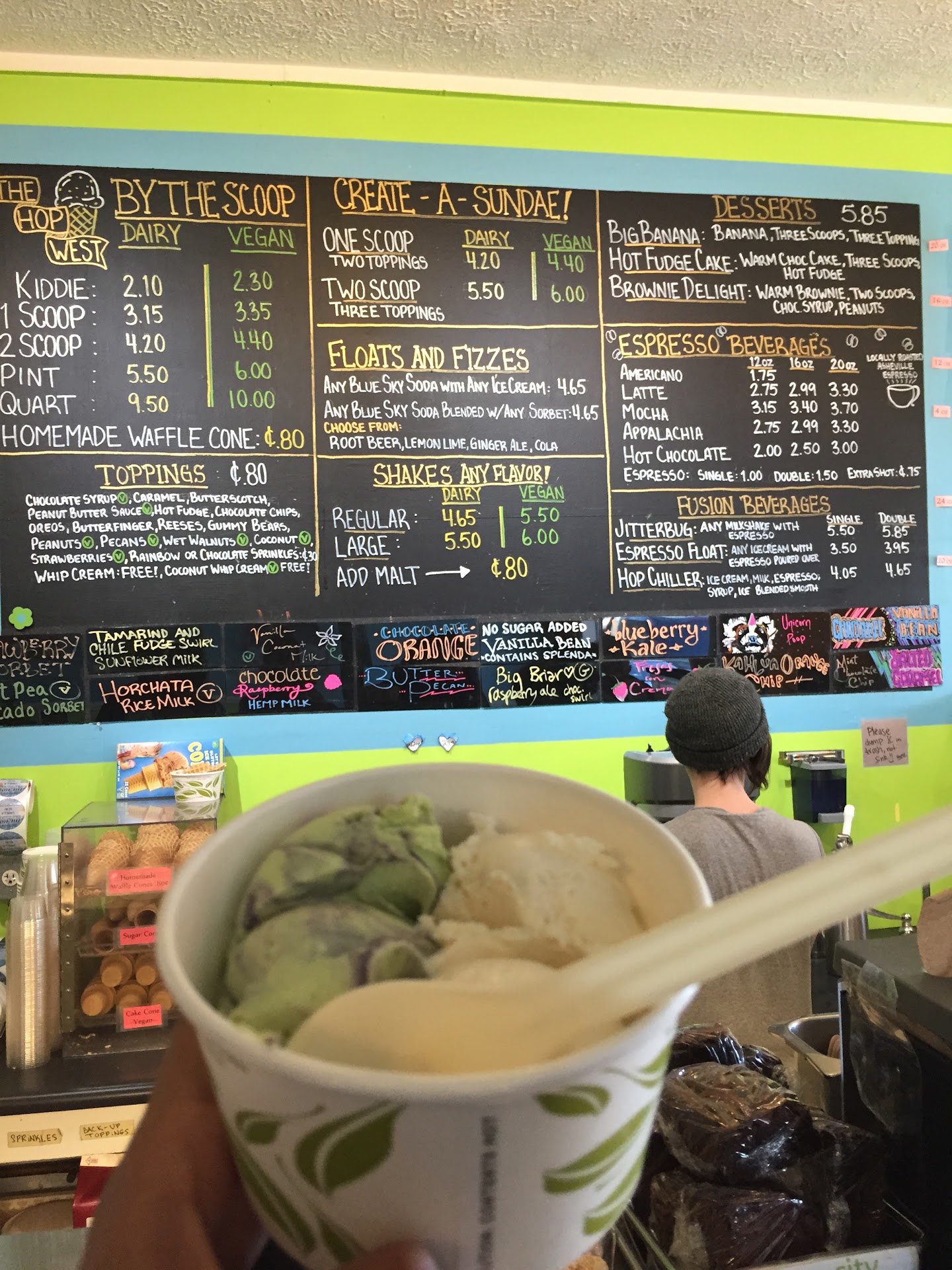 Read moreGosh, I really wanted to love this place. We came in from out of town and asked a local where to go for ice cream and they recommended The Hop. I was excited because they had more non-dairy options than most ice cream shops but unfortunately the flavor was pretty lacking. I got the cookies and cream and the fudge brownie and it honestly kind of tasted like the Lacroix of ice cream. It was like I was eating, frozen Oatmilk with a hint of cookie flavor or fudge. Unfortunately, it was pretty underwhelming. Where I’m from we have a ridiculously good non-dairy ice cream shop called Off-track, and maybe it isn’t fair to compare them to that place but it’s just hard not to when you’ve had exceptionally good vegan ice cream. This place wasn’t awful but wasn’t great either and for the price it was a bit...