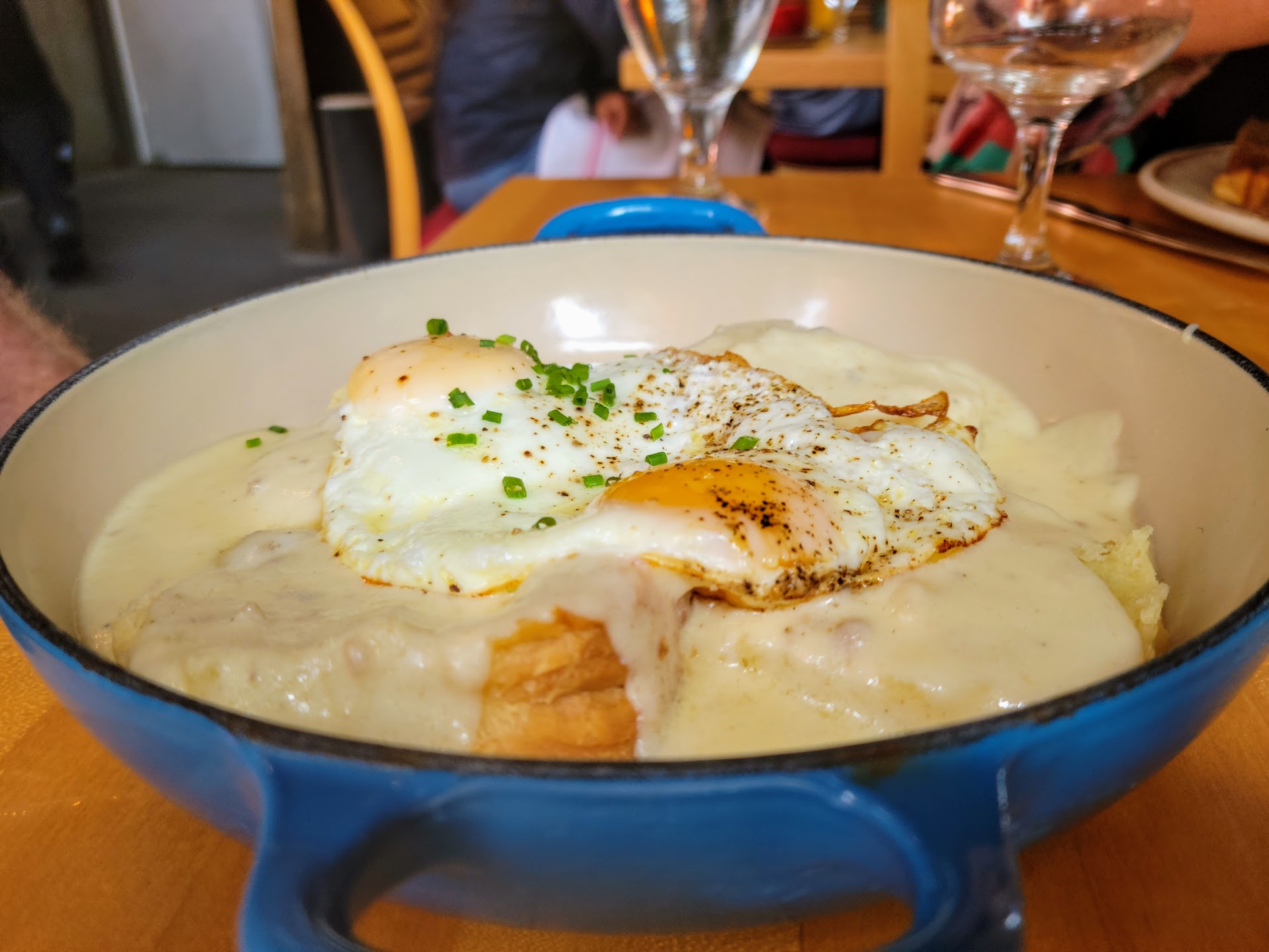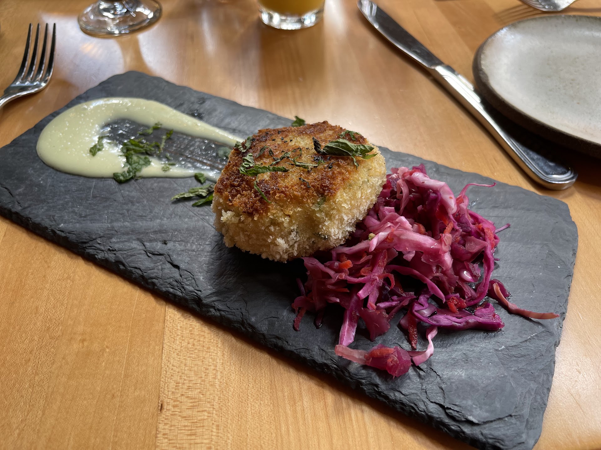 The trout with smoked greens, roasted red potatoes, and mustard sauce is a standout dish that is sure to delight your taste buds. The local trout is cooked to perfection, with a wonderfully crispy exterior that gives way to tender and flaky meat. The smoked greens are a unique and inspired addition, providing a smoky depth that perfectly complements the trout's delicate flavors. The roasted red potatoes are perfectly cooked and seasoned, adding a comforting and hearty element to the dish. The mustard sauce is the perfect finishing touch, tying all the elements together with a tangy and flavorful kick.