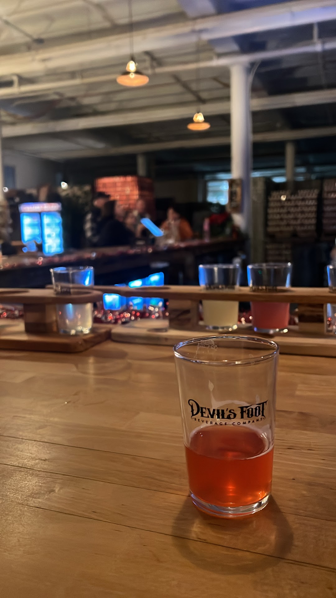 Read moreThe Mule at Devils Foot Brewery is an absolute gem! The location and atmosphere are amazing. You can enjoy a game of cornhole outside, and there’s a massive projector screen for sports enthusiasts. Whether you’re with a big group or a couple, they’ve got you covered with their spacious seating options, including comfy couches.