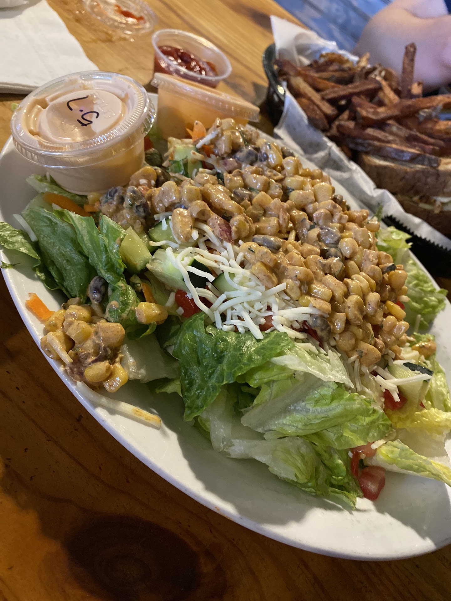 Read moreWe’ve eaten here a few times. Each time before food has been your typical bar fare but nothing special. Tonight was a real treat, we both left so angry and disappointed. We went through three waiters, only one was nice and got us drinks and to order and at least say hi. While waiting for a table another waitress was rude to us for not sitting at the high tops available, but we had a baby and she didn’t understand why a high chair doesn’t work.... the last waiter never refilled our drinks, asked if we needed anything or even spoke to us unless we asked for him. We waited over an our for food and our baby was so fussy and hungry, we asked if we could order fries or anything to keep her at bay until the food came. Instead of just saying yes I’ll put an order in for you, he gave us a long explanation of food is made to order it’ll take longer than your dinner and acted like we wanted it for free or were asking for a lot. We still asked to put an order in, how long could fries take? WE NEVER GOT THEM! And worse our food had come right out after ordering. Like why couldn’t he go check and say “hey your food will be right out”. My husbands burger was good but not worth $20 and my shark and chips were not worth the money either. We were just so disappointed in everything. We expected so much better than plastic cups and silverware, rude and awful service, and omg the wait for awful food, and food we didn’t even get. We were polite and forgiving the whole time because they were busy, but busy doesn’t excuse how we were treated or overpriced...