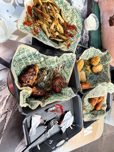 Read moreBest wings I have had since moving from FL in 2012. Great portions and great taste. Only thing keeping it from being 5 star was the cashier. This was our first time eating at a wingstop. We asked about the size of the sauce cups. She made a circle with her finger about the diameter of a half dollar. So we ordered an extra large cup of ranch and blu cheese. When she put the order in it said two ranch, we corrected and said one ranch and one blu cheese. When we got the receipt she had charged us for two ranch and one blu cheese. They are $4 per cup. She did not tell us the combo came with two side sauces that were both twice the size of what she described either. When the food was brought out we had two 16oz containers of ranch and 1one 16oz container of blu cheese as well as the two cups of each that came with each combo. Needless to say the food was good enough not...