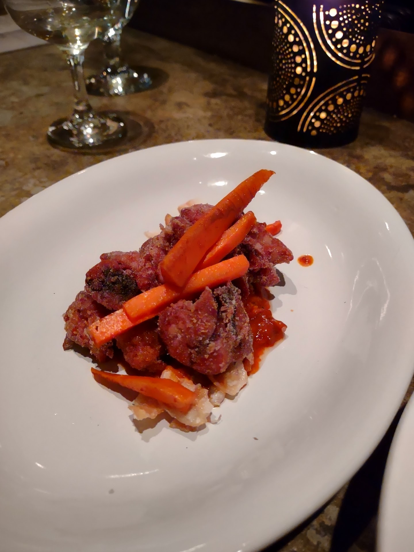 I started with crispy brussel sprouts and the chickpea dish. Both were fantastic, although the description of the brussel sprouts dish was VERY different then what was brought out. Don't get me wrong, they were delicious but there were several ingredients in the dish that weren't mentioned on the menu and several ingredients that were mentioned, and just weren't in the dish.