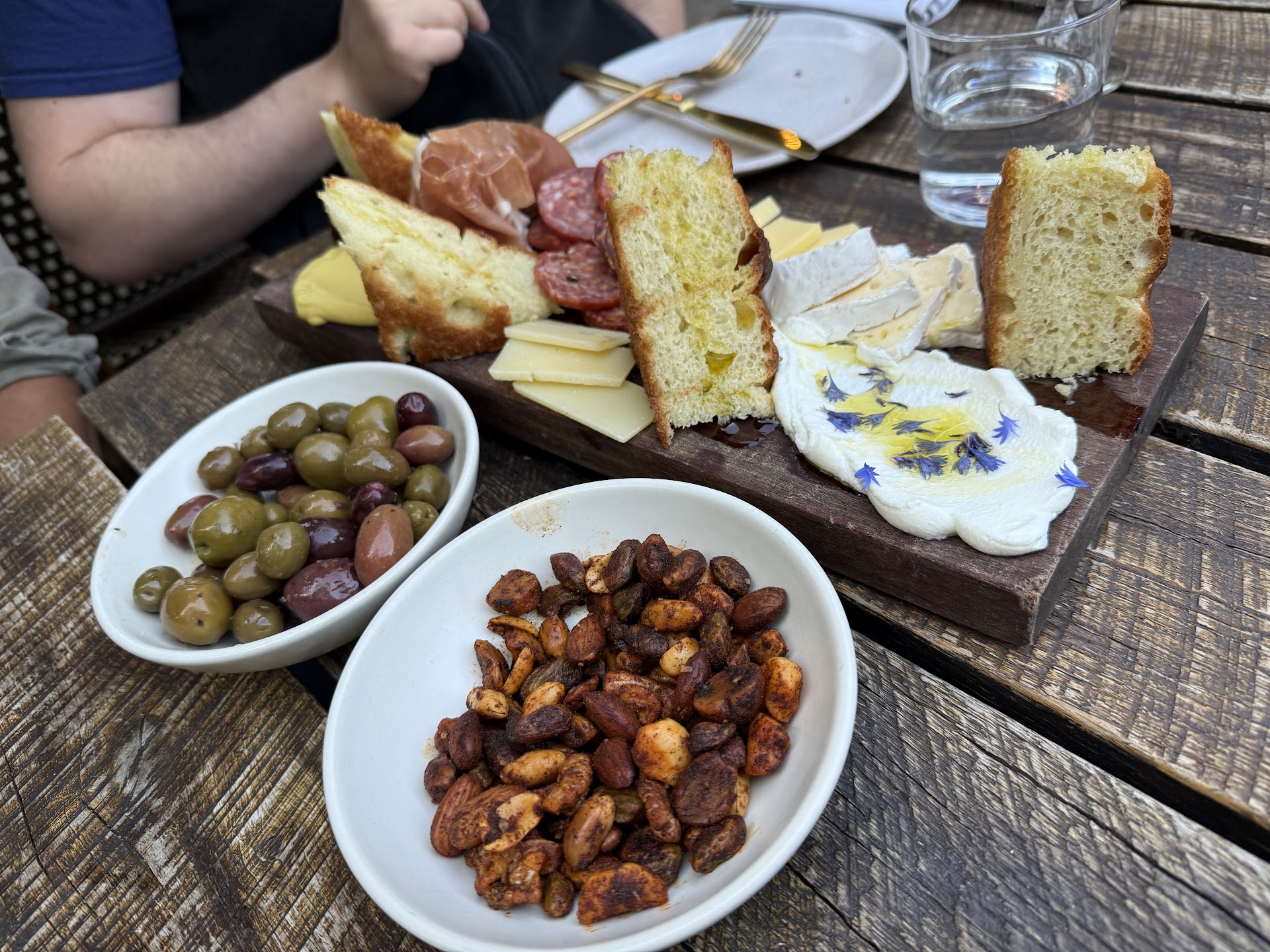 Nevermind the economics lesson, let’s talk food. We started with the charcuterie board which was one of the best I’ve had at a restaurant. Lots of bold flavors and textures between the cheeses and meats. The focaccia bread was also fresh, airy, and excellent. I would actually recommend getting this even if you’re going out just for drinks. The peach-flavored old fashioned was a hit, and we also tried a potent lavender cocktail which was super unique.