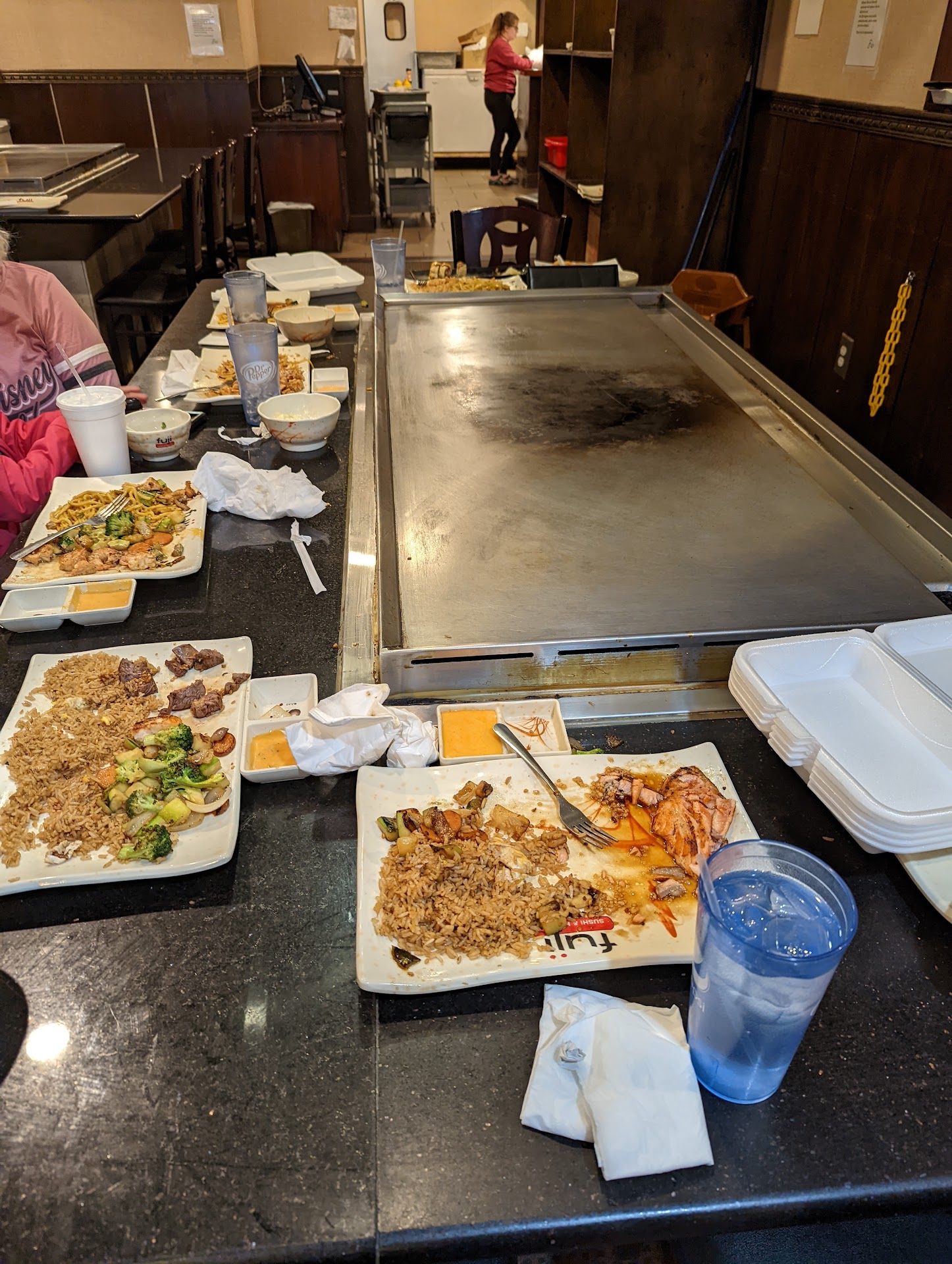 Read moreWell I have to say The Chef was Good and Funny and made Our time there Great (Food was cooked just Right) Thank You Sir (Chef) The Waitress must be New didn't know many answers to Our Questions ,She will learn (we can work with that ) I am assuming it was 1 of the Owner's (Dark headed lady around 35-40) who came to the table and made the Chef nervous by saying what are you doing over here not enough noise , and saying Well I have to check on him all the time But "HE WAS DOING AWESOME" to Us Well now I will say when you came over and checked out the chef. How about cleaning up the dishes beside Us from the other people that was sitting at the table before Y'all sat Us there You know the DIRTY dishes you were learning across to talk to the Chef (Maybe someone needs to check on you from time to time) Food was $62.00 plus $10.00 tip $72.00 for 3 people wasn't to bad We would go back just to have the same Chef. If We weren't here from Richmond Virginia to visit Family member in Kings Daughters hospital we would go back Maybe next time "Because this Girl loves to Eat " lol Ok here's to the reply I got She could have been older or younger not sure and it was Us 3 Women We sat at the Grill by the window there was a Party of about 8 (with a baby in rocker carrier) I believe it was on Monday around 3:30 -4 ish. our Ticket came to $61.and some change . I paid cash for ticket and tip We had 2 Steak and chicken veggies and fried rice 1 Steak and Shrimp no veggies but did have fried rice 2 bowls of that DELICIOUS...