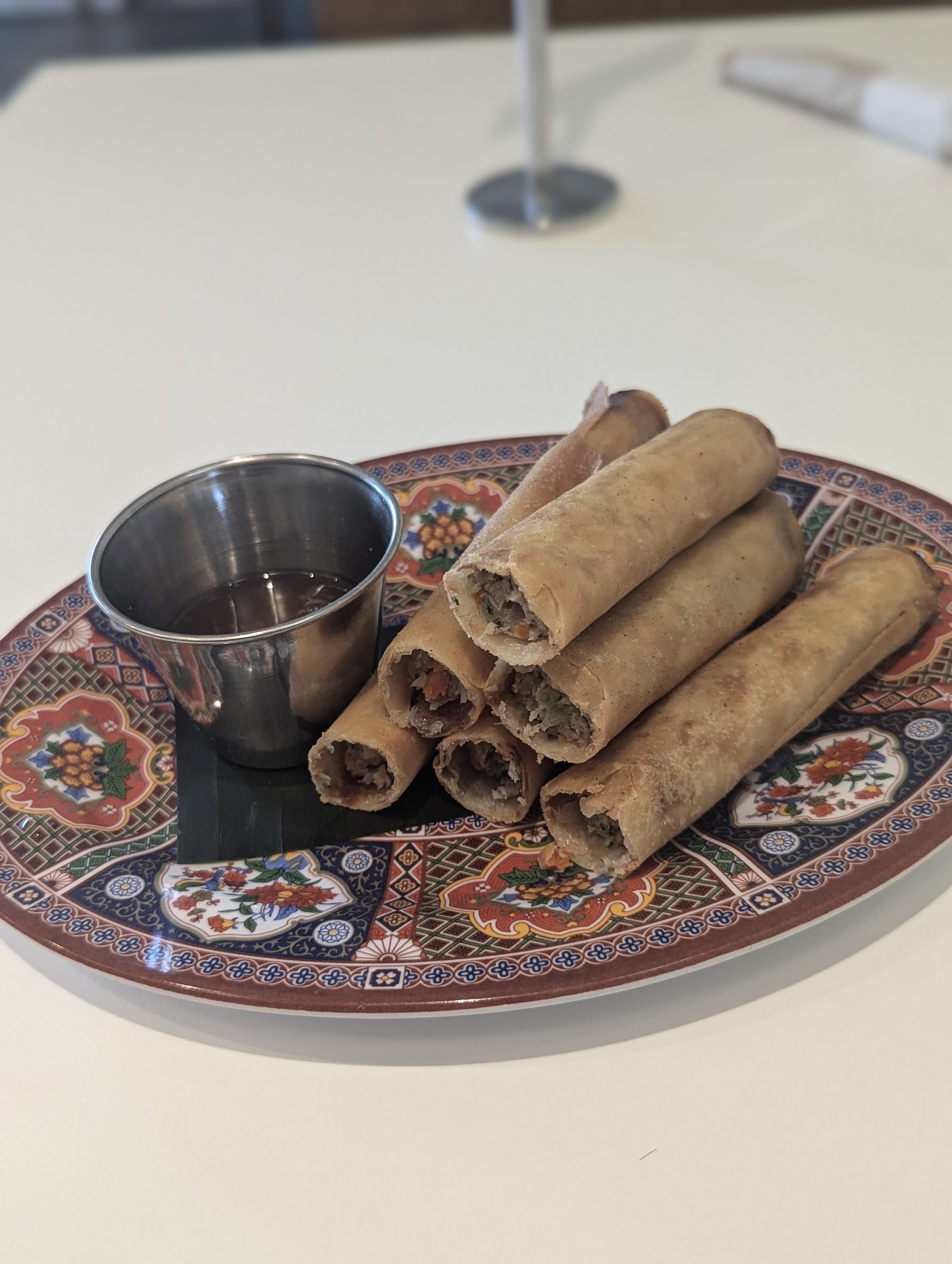 The lumpia are clearly fried to order, and so delicious that I was having a hard time being patient enough to wait for them to cool down enough to not burn myself eating them lol. The dipping sauce is so good I could drink it by itself. They look much better in person than they do in the picture I took; by the time I realized my camera was smudged I had eaten them all lol.