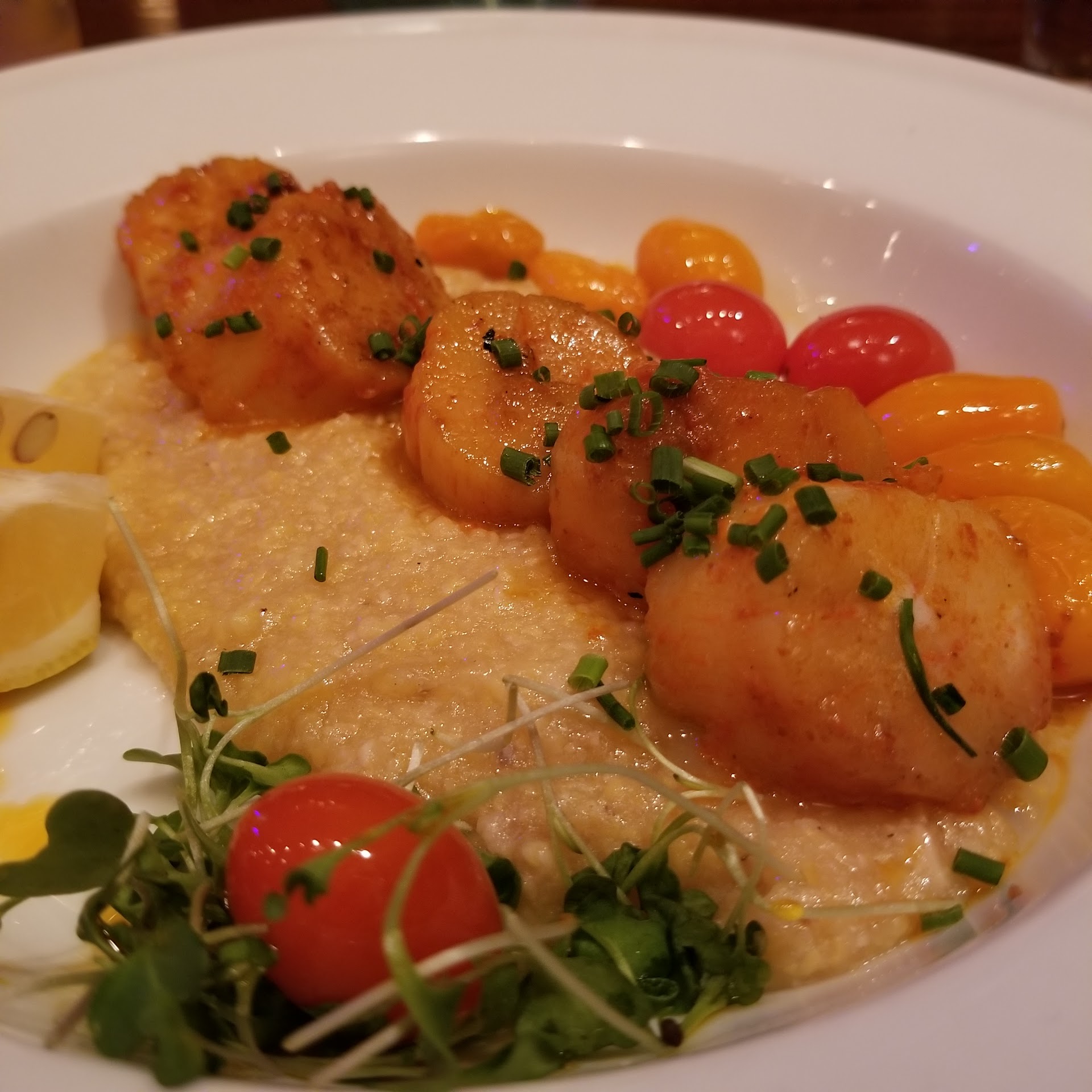 The La Gloria cocktail was well balanced and was crafted with care. The potato & leek soup, if not a bit bland, was at least not too rich. The entre, the scallops and walnut polenta, was terrible and deserves to be called bland! The scallops were watery and the spicy marinade they used did not pair as well as expected with the walnut polenta. The polenta, which had a terribly grainy texture (like eating a mealy apple with almond shards in it) and was wholly disappointing for it's lack of flavor. It was all made worse by the enviro-unconscious tomatoes, which did not belong on there and should have been a preserved vegetable. Oh, plus who leaves seeds in the lemon they serve?