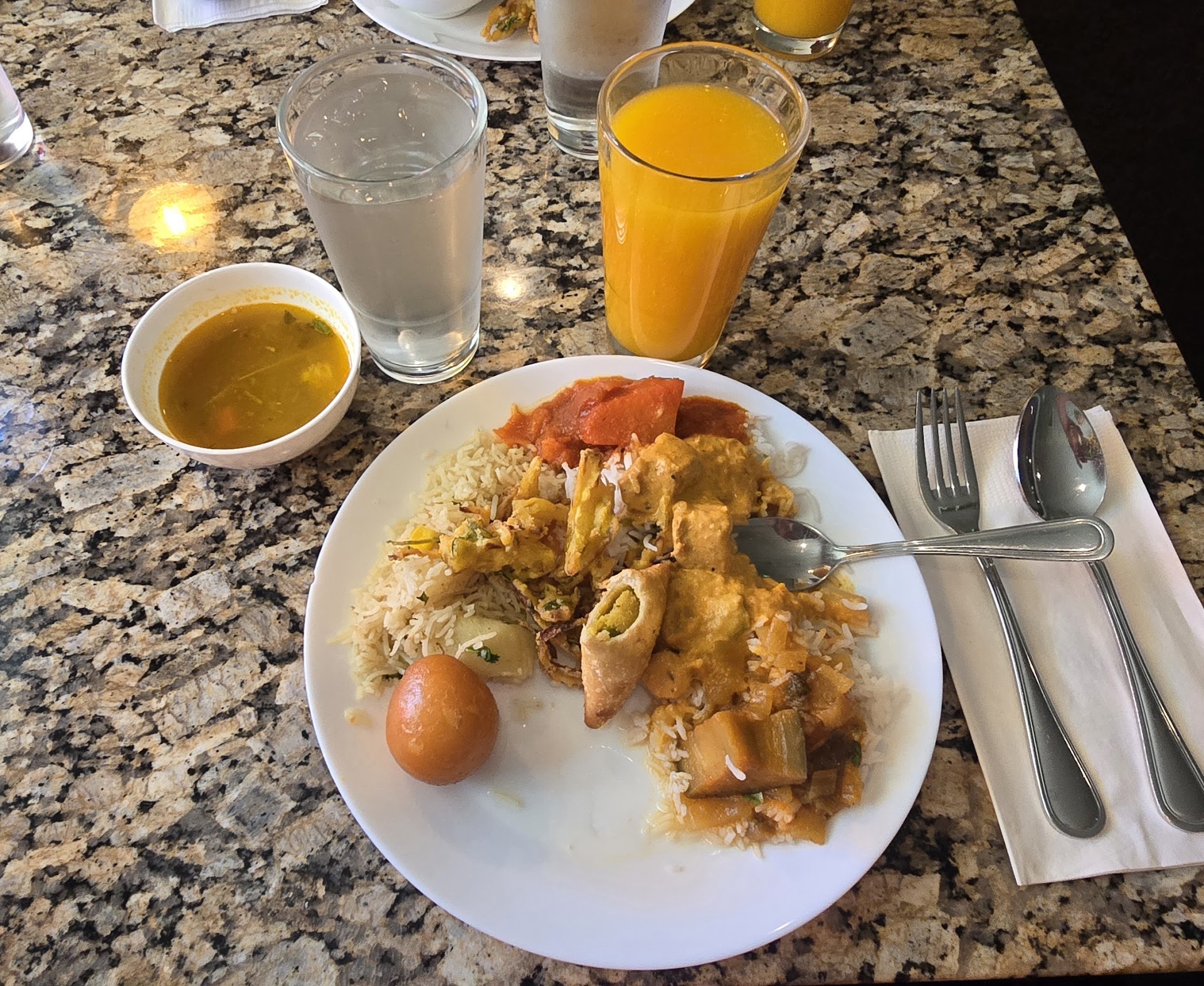 As someone familiar with Indian flavors, I felt the dishes were missing the bold spices and taste you’d expect. The items I did enjoy were the Cauliflower Manchurian, the raita, and the mixed vegetable korma/curry that came with the thali. I wasn’t a fan of the dessert either, though it was at least served nice and chilled. On the positive side, the service was good — the server was friendly...
