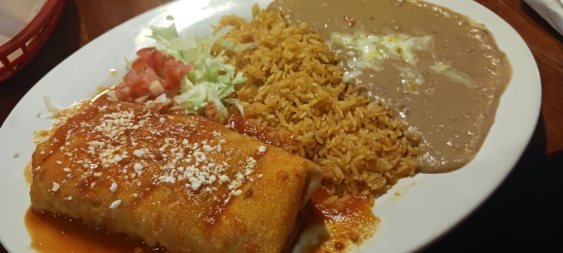 We heard bad things about this place from others, but they had pictures and story night with Santa so we figured we would go. The fact that they had Santa for free pictures and story was the only redeeming thing really. I try to seek out Mexican restaurants when I can, so the fact that I hadn't been here was surprising, but now I know why. The chips tasted like stale bread and saw dust, and the "salsa" was basically modified ketchup, and it actually tasted like ketchup. My enchilada was more dough than meat, and the beans were very soupy, and guacamole that comes with it was super bland, brown (oxidized) and they only gave a tiny amount. Kids chicken fingers were typical but hamburger was 80% bun. Margaritas tasted OK but seemed like there was less actual margarita than other restaurants especially with the amount of ice in it. Service wasn't too bad, although we were right next to the kitchen and could see other tables on the other side of the restaurant were neglected. Our overall experience wasn't that bad, but the food is the main reason I got to Mexican restaurants and this was one of the worst I'd had in...