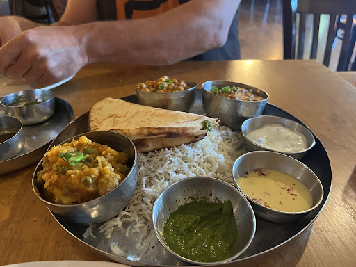 Read moreGreat food, good quantity. We got gobhi Manchurian for appetizer and the royal thali. We were 5 of us so we did end up trying almost all the curry options available. Gobhi manchurian tasted nice even though it was more of a honey chilli kind of dish. Overall, food quality was good and all curries tasted different so that was great. Food was very rich and portion size is big for the thali so there is no way you will be able to finish it in one go. The naan was my favorite bit. Lamb Rogan josh was the best. Butter chicken, chanaa masala and shrimp malai curry were also delicious. Medium spice level is decent. If you ask for spicy, it comes with a bunch of chilli powder at the top which does make the curry very spicy. There is no shrikhand with the thali. We got gulag jamuns in place of that. I also got the rose mule which was delicious and had a great ginger kick to it. Would recommend to try this place when...